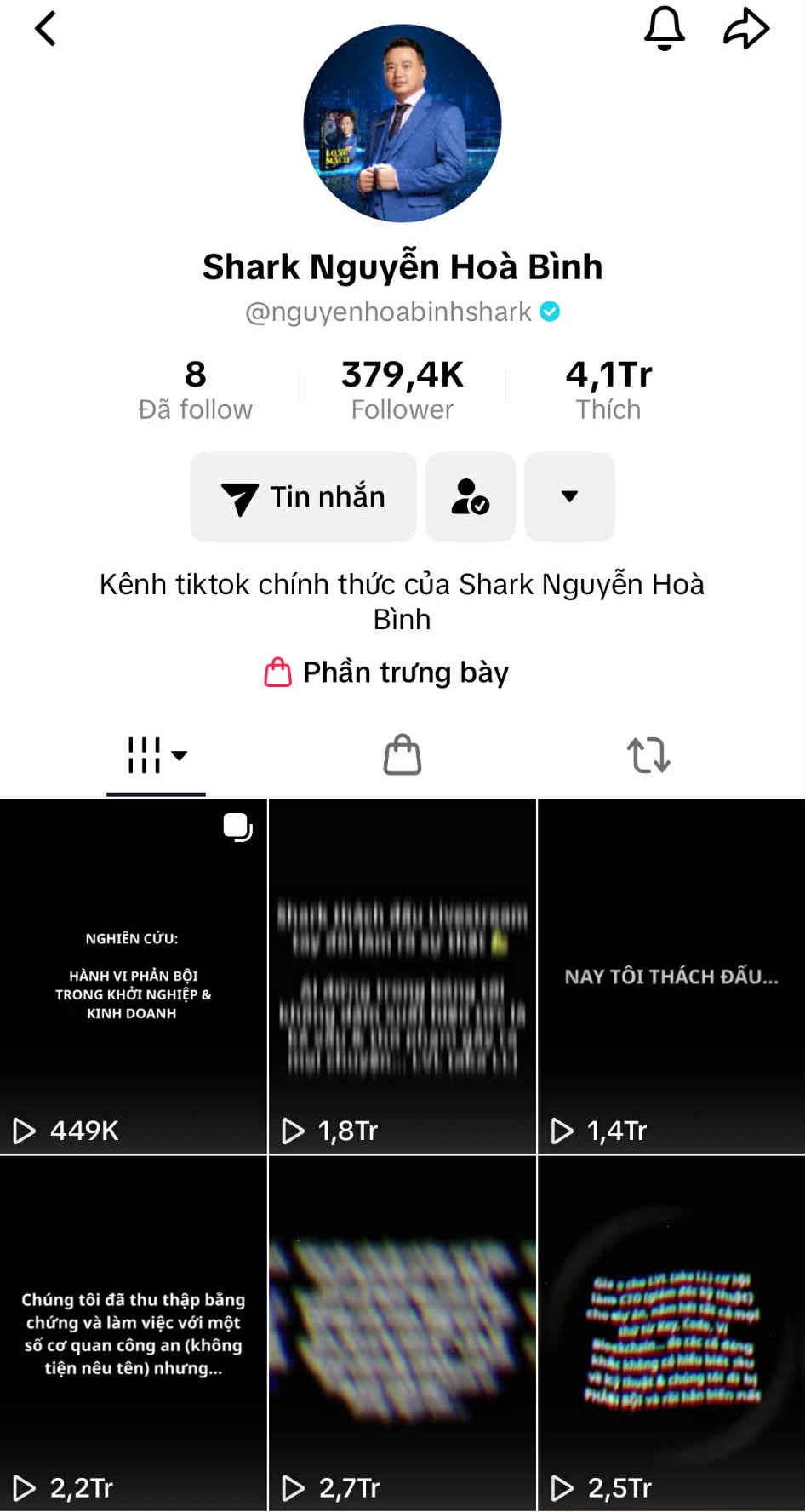 Kênh TikTok của Shark Bình (Ảnh chụp màn hình)