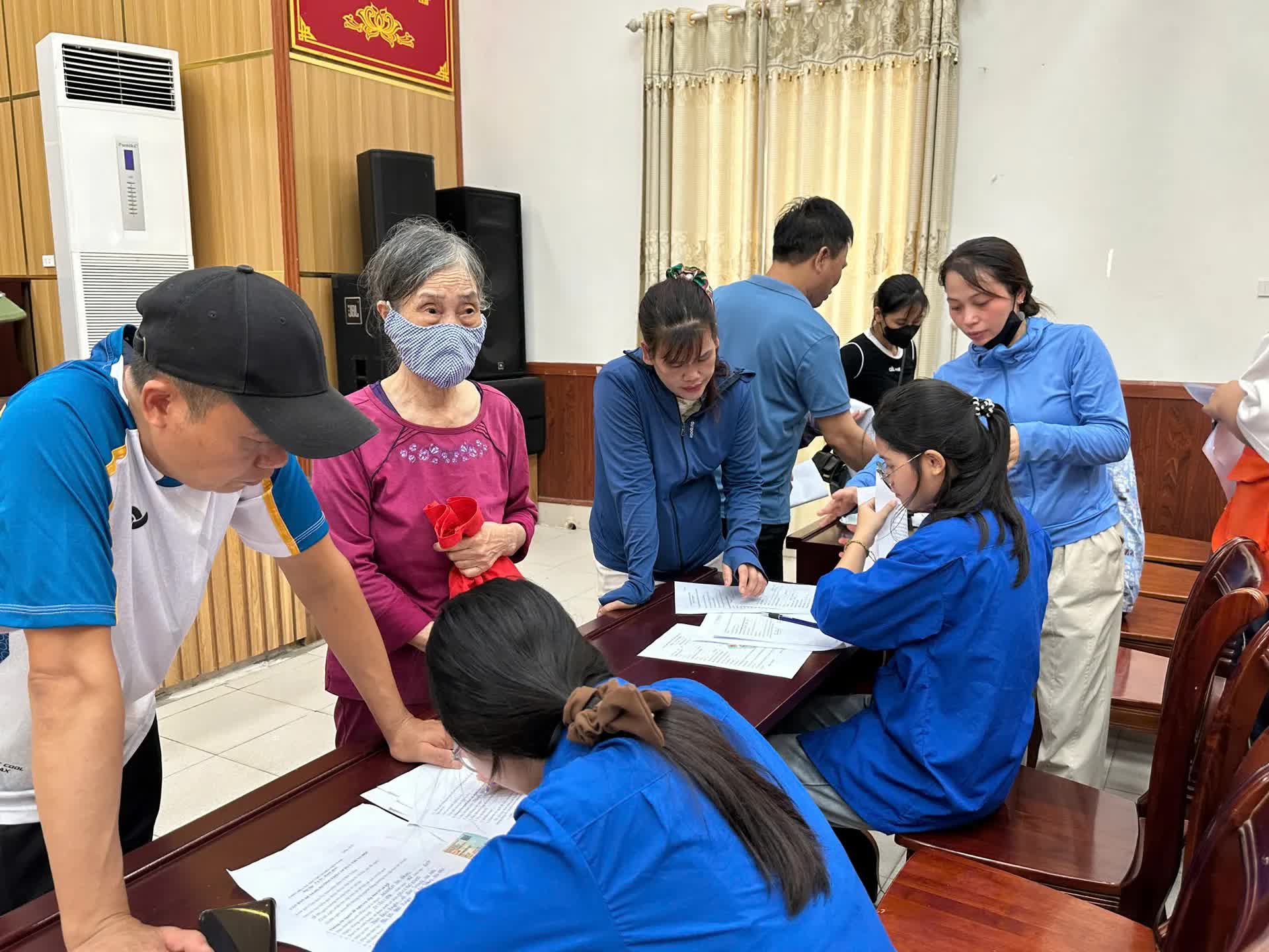 Cán bộ xã Bát Tràng (TP Hà Nội) hướng dẫn người dân làm hồ sơ trợ cấp hưu trí xã hội. Ảnh: KTDT