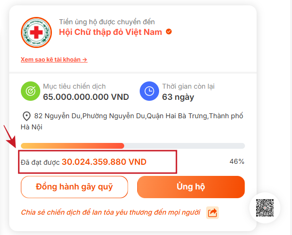 Trước đó, chỉ hơn một ngày sau khi phát động chương trình, tính đến 6h30 ngày 14/8 đã có hơn 31.800 lượt ủng hộ số tiền hơn 7 tỷ đồng. Như vậy, chỉ trong hơn gần 6 tiếng sáng ngày 14/8, số lượt ủng hộ đã tăng hơn 71.000 lượt với số tiền ủng hộ tăng thêm là hơn 15,9 tỷ đồng.