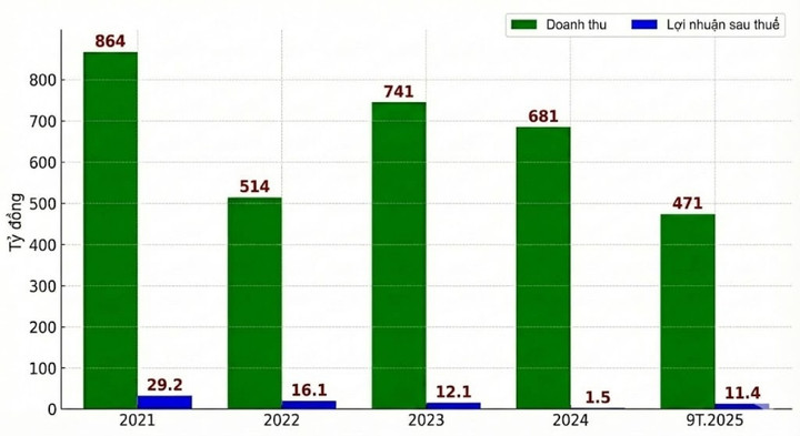 Lũy kế 9 tháng đầu năm 2025, doanh thu của doanh nghiệp đạt 471 tỷ đồng, giảm gần 11% so với cùng kỳ. Trong bối cảnh doanh số sụt giảm, việc tiết giảm chi phí giúp lợi nhuận sau thuế đạt 11,4 tỷ đồng, cải thiện so với khoản lỗ 6 tỷ đồng của cùng kỳ năm trước.