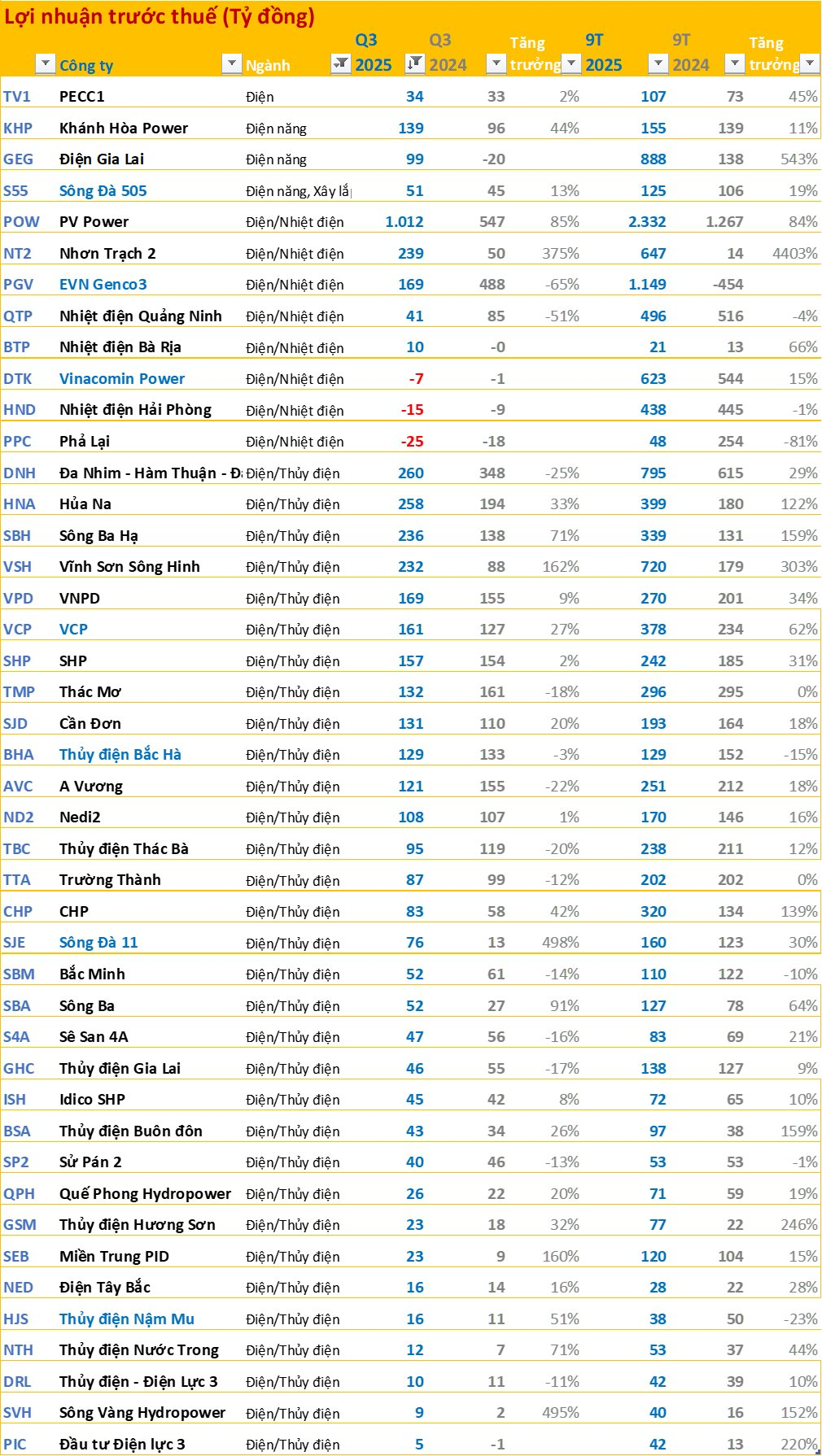 Các doanh nghiệp đã công bố BCTC quý 3/2025 sắp xếp theo ngành: