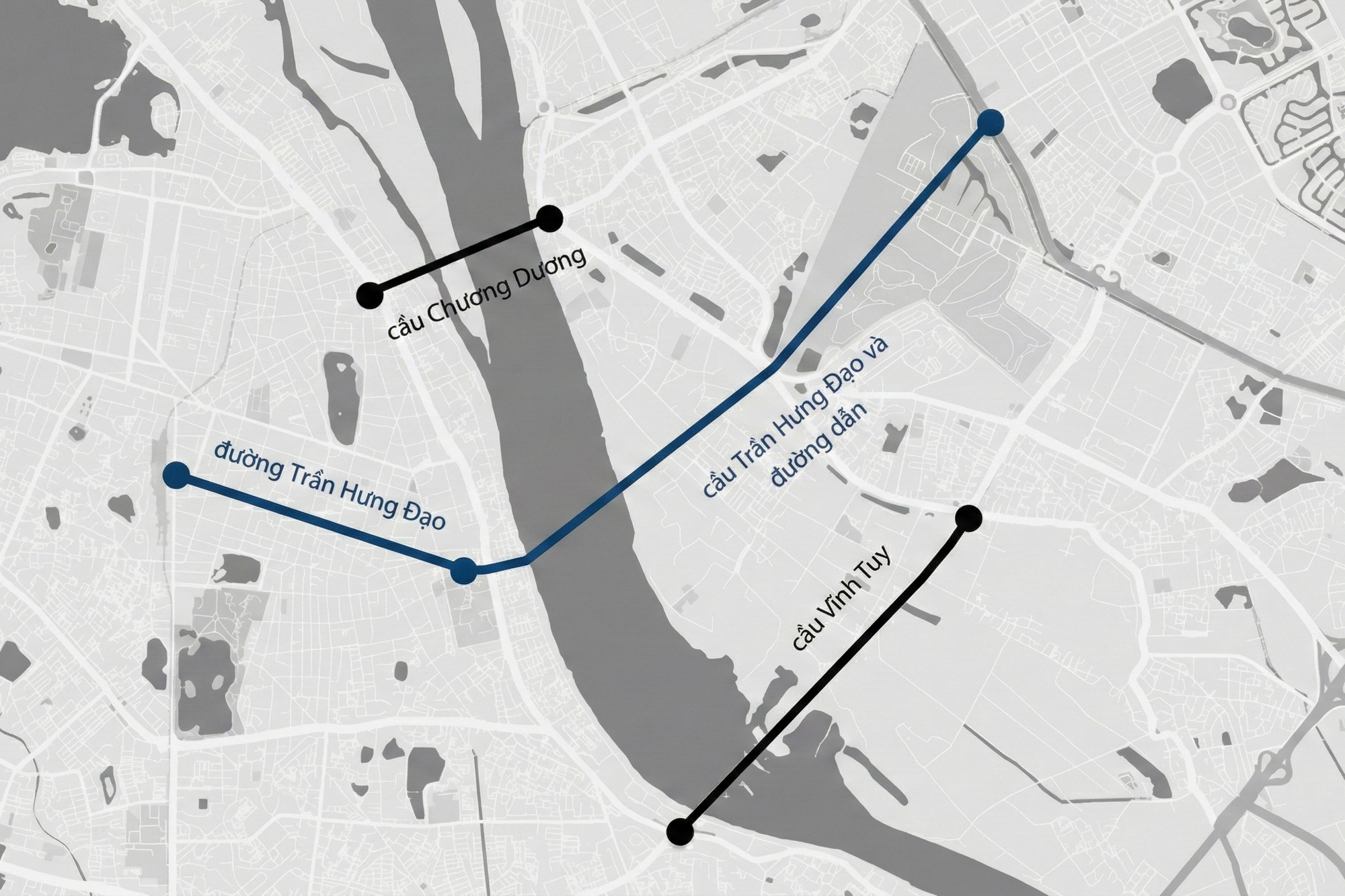 Cầu và đường dần có chiều dài 4,18 km, nối khu vực ngã 5 Trần Hưng Đạo – Trần Thánh Tông – Lê Thánh Tông với phố Nguyễn Sơn, mở thêm trục kết nối trực tiếp từ lõi trung tâm sang phía Đông thành phố.