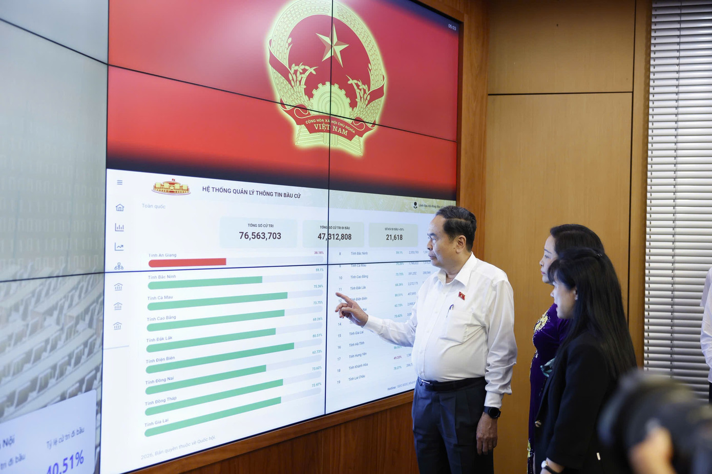 Trong ngày bầu cử 15/3, tổng số cử tri của cả nước là hơn 76,5 triệu cử tri, số cử tri đã tham gia bỏ phiếu hơn 76 triệu người (đạt tỷ lệ 99,38%).