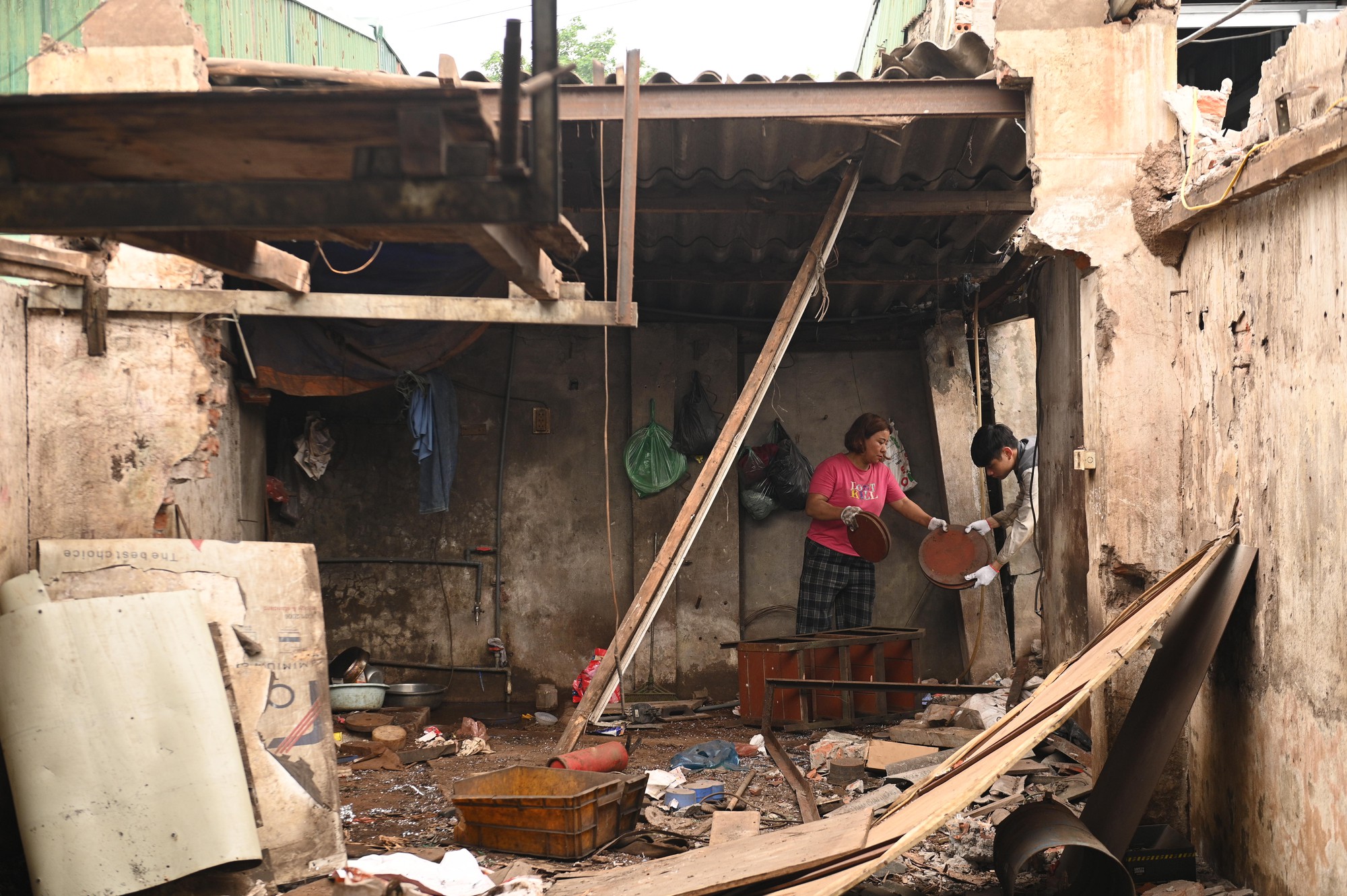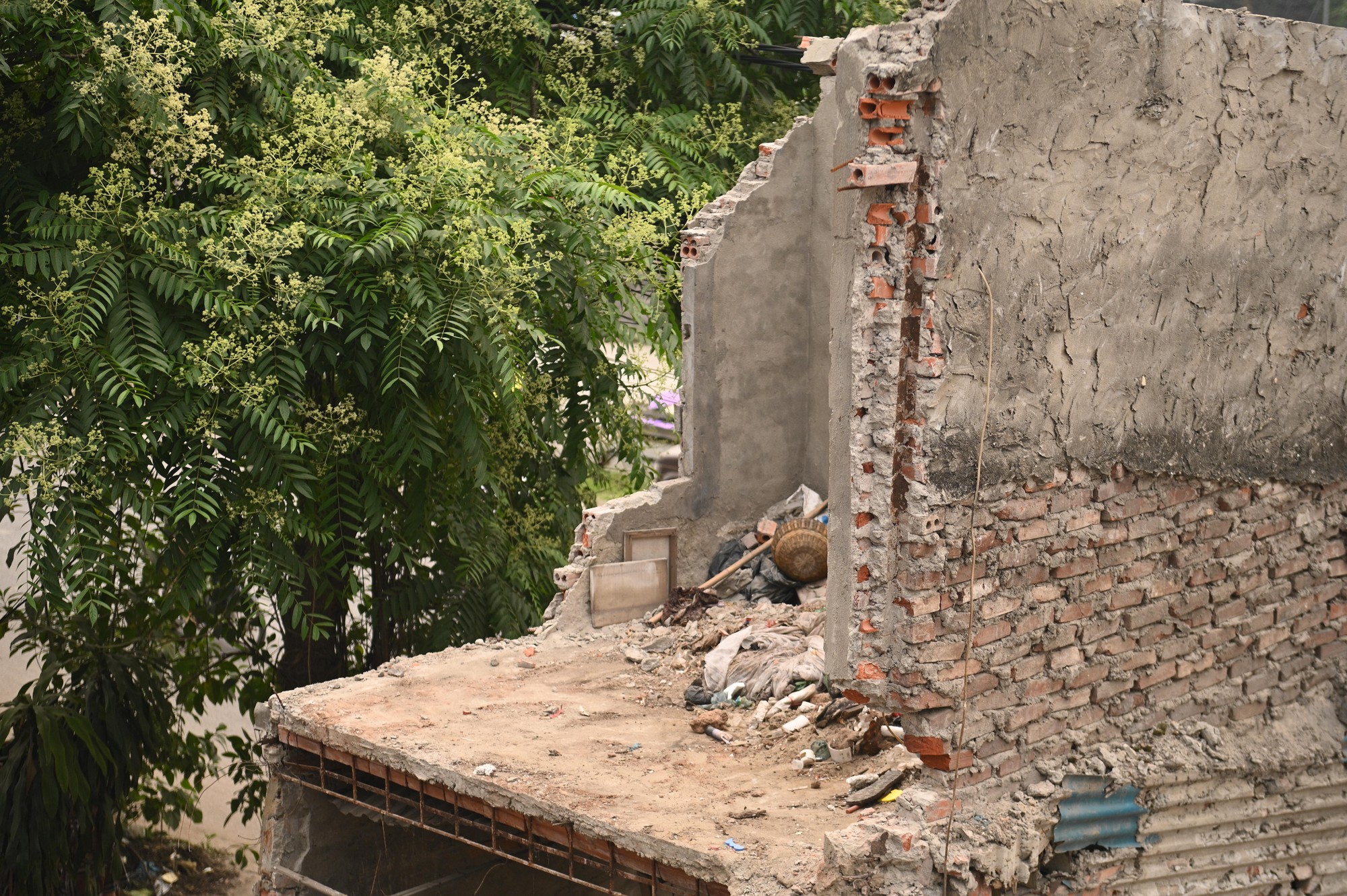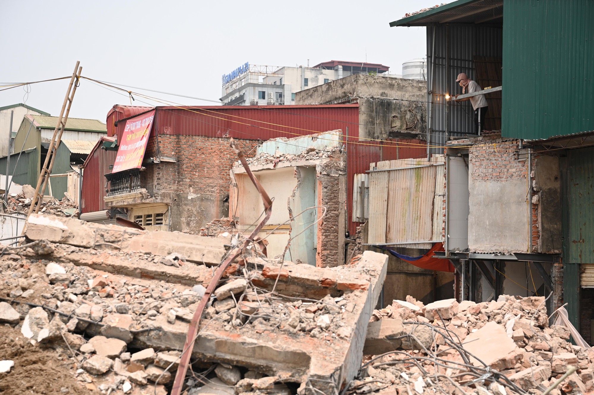 Tại nhiều đoạn tuyến, nhà ở, tường bao, mái che của người dân đã được tháo dỡ hoặc đang trong quá trình xử lý