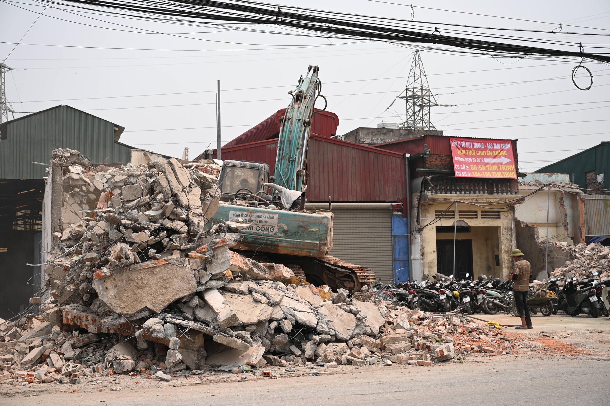 Công tác giải phóng mặt bằng trên tuyến đường Tam Trinh đang được đẩy nhanh, nhiều công trình bị phá dỡ để bàn giao đất thi công sau thời gian dài ách tắc.