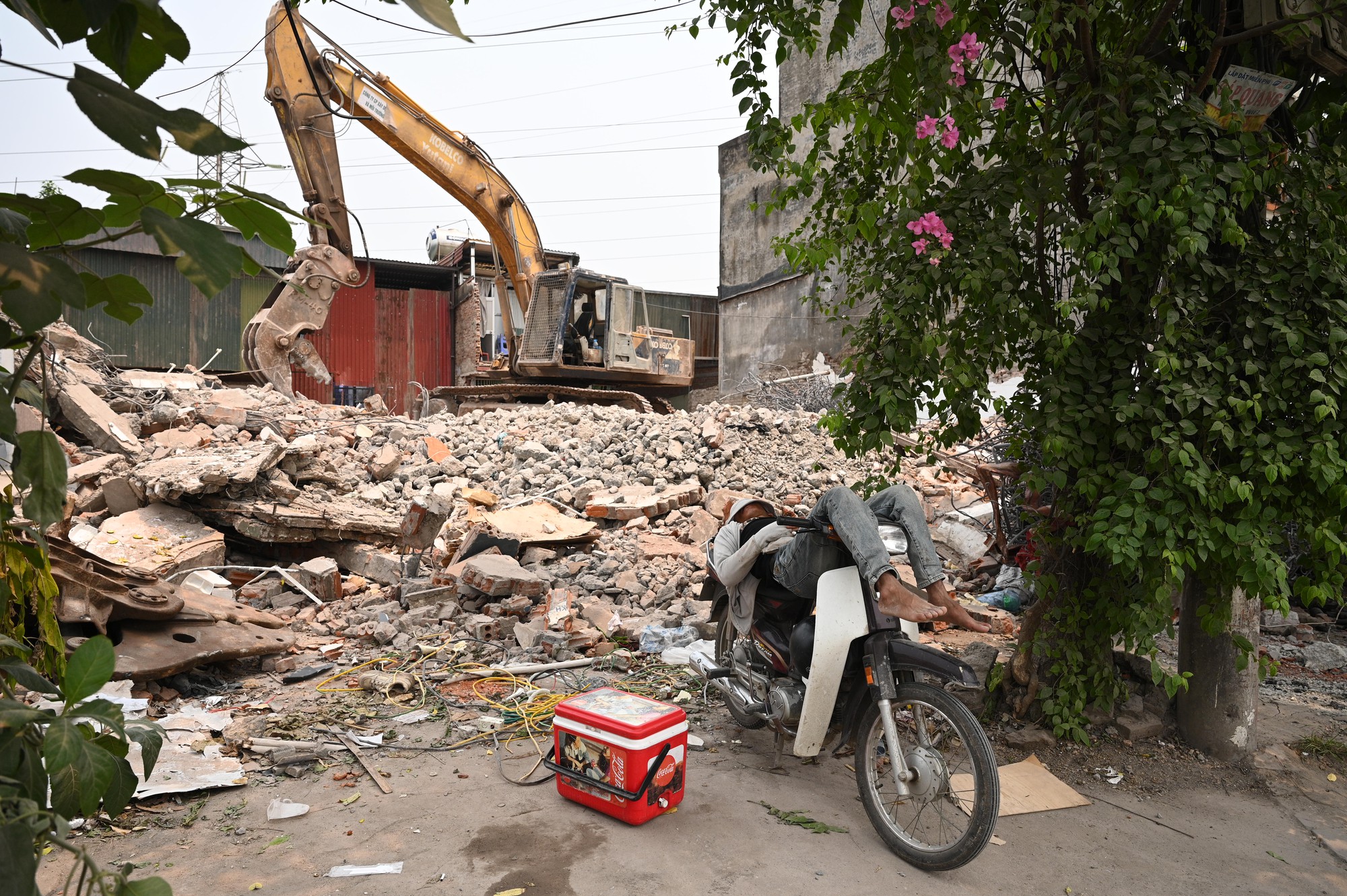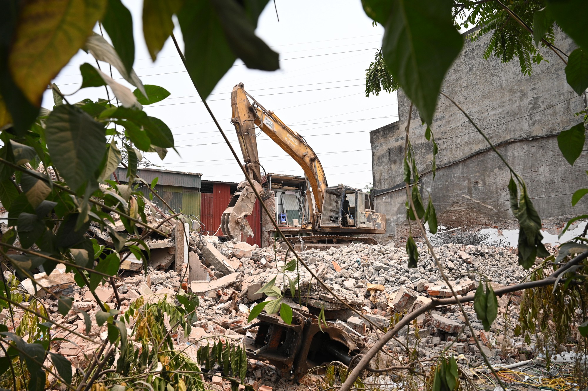 Nhiều máy xúc, máy cẩu được huy động liên tục để phá dỡ các hạng mục công trình nằm trong diện thu hồi