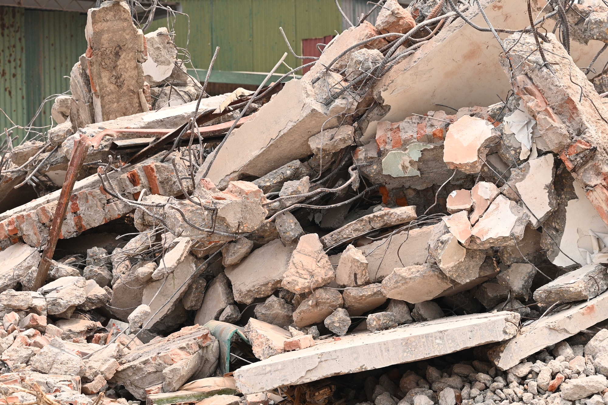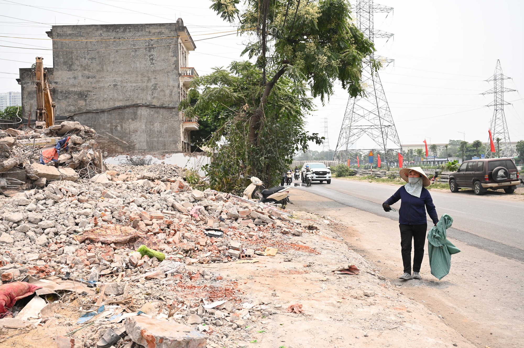 Không gian thi công ngổn ngang vật liệu xây dựng, phản ánh rõ giai đoạn chuyển tiếp từ giải phóng mặt bằng sang thi công hạ tầng