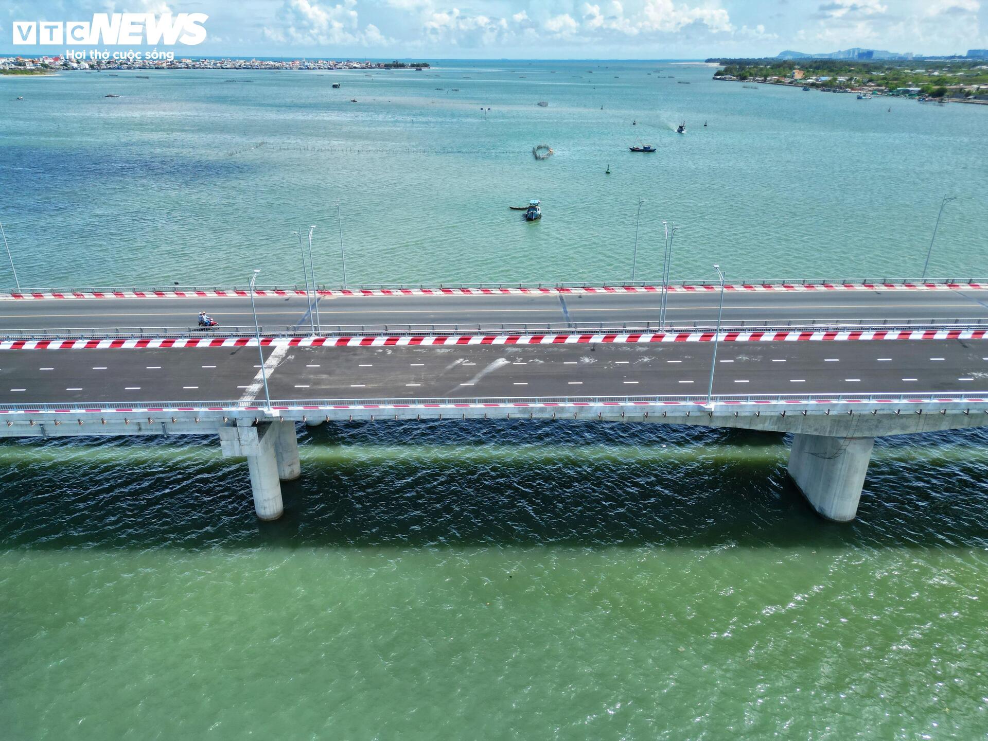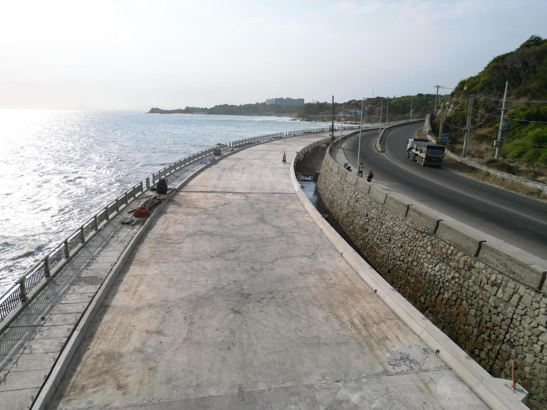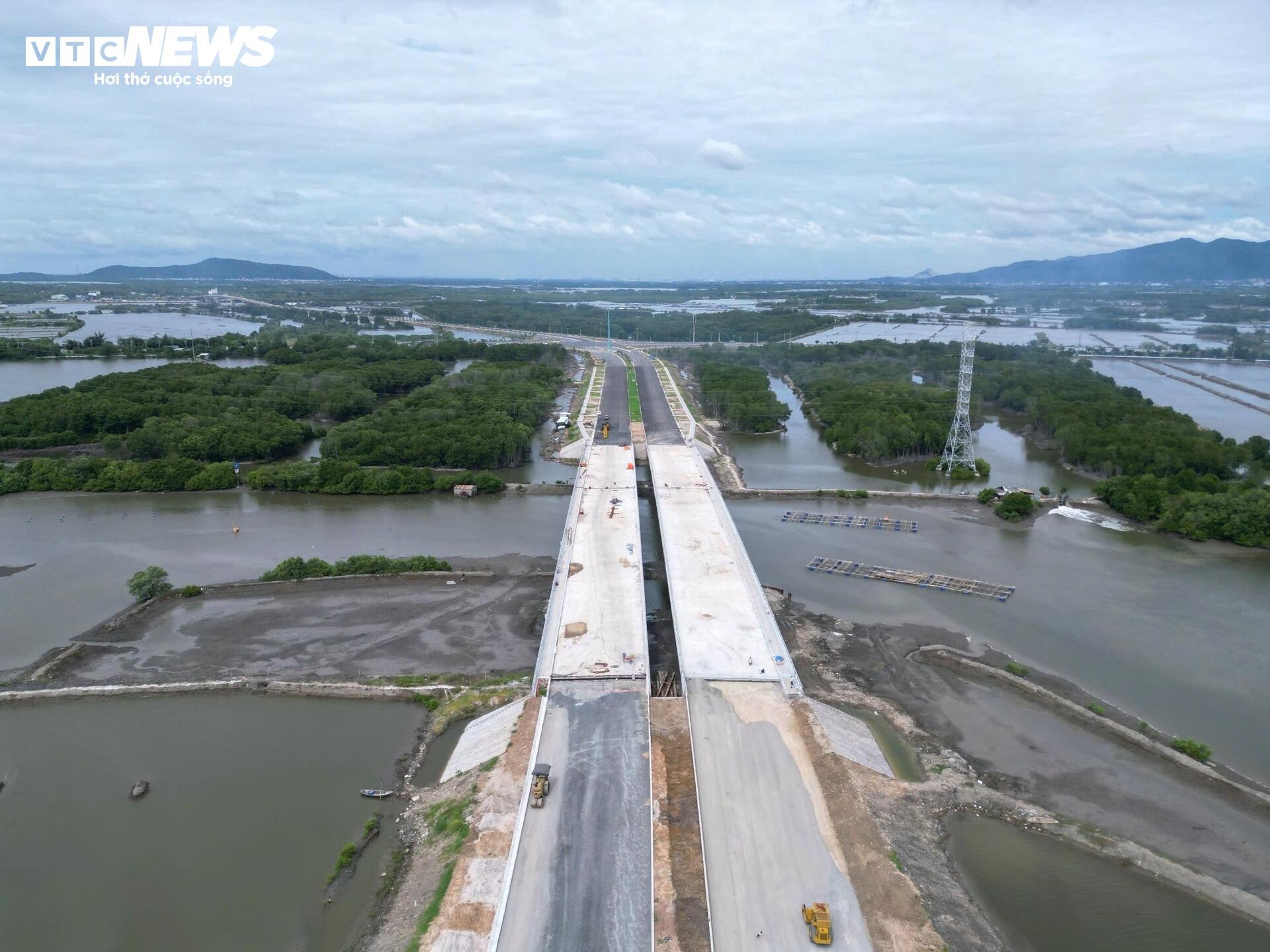 Đối với hạng mục cầu cạn qua khu vực mũi Kỳ Vân, đến nay phần lớn trụ cầu, lan can và mặt đường đã hoàn thành, đạt hơn 90% khối lượng thi công.