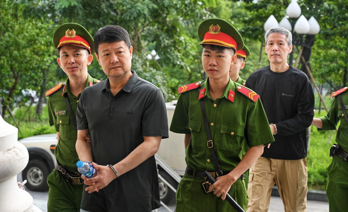 Các bị cáo được dẫn giải đến TAND TP Hà Nội. (Ảnh: Phùng Anh/Thời báo VTV)