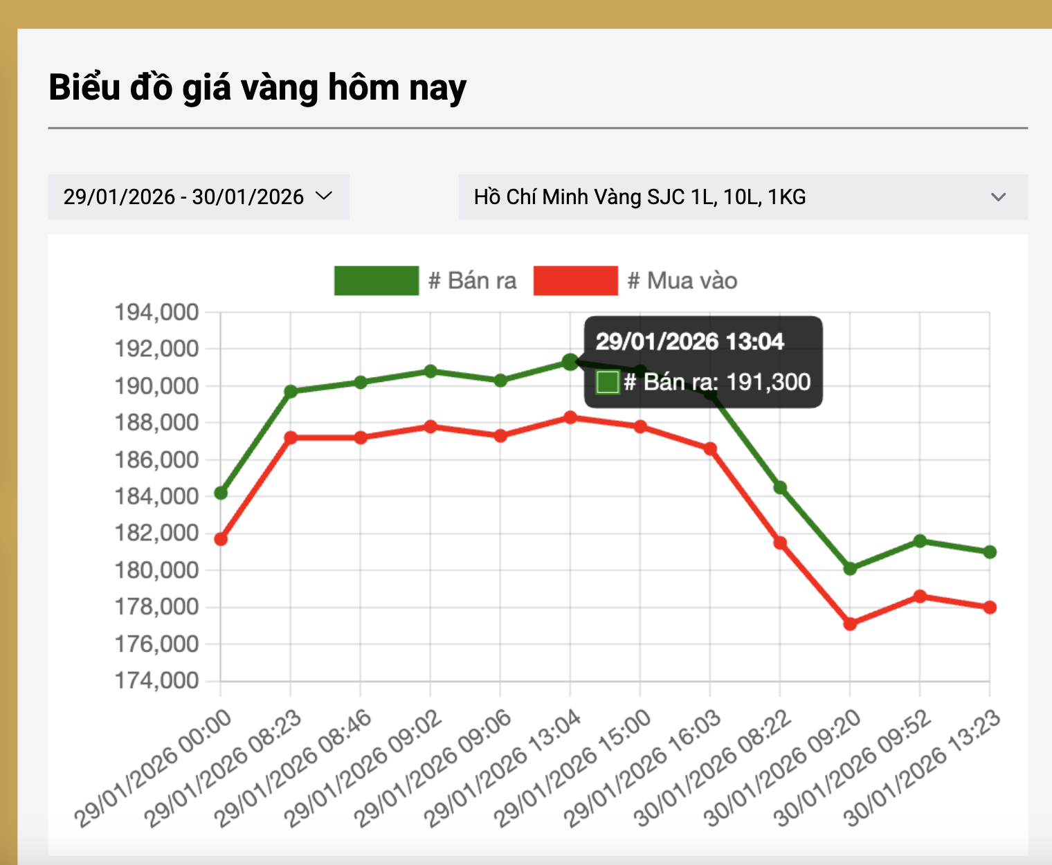 Cuối ngày hôm nay, Công ty Vàng bạc - Đá quý Sài Gòn (SJC) và nhiều đơn vị kinh doanh vàng niêm yết giá vàng miếng SJC mua vào còn 178 triệu đồng/lượng, bán ra 181 triệu đồng/lượng, giảm 3,5 triệu đồng mỗi lượng so với buổi sáng. Chỉ trong 1 ngày, mỗi lượng vàng mất hơn 10 triệu đồng – mức giảm sốc sau khi tăng vọt trong vài ngày qua.