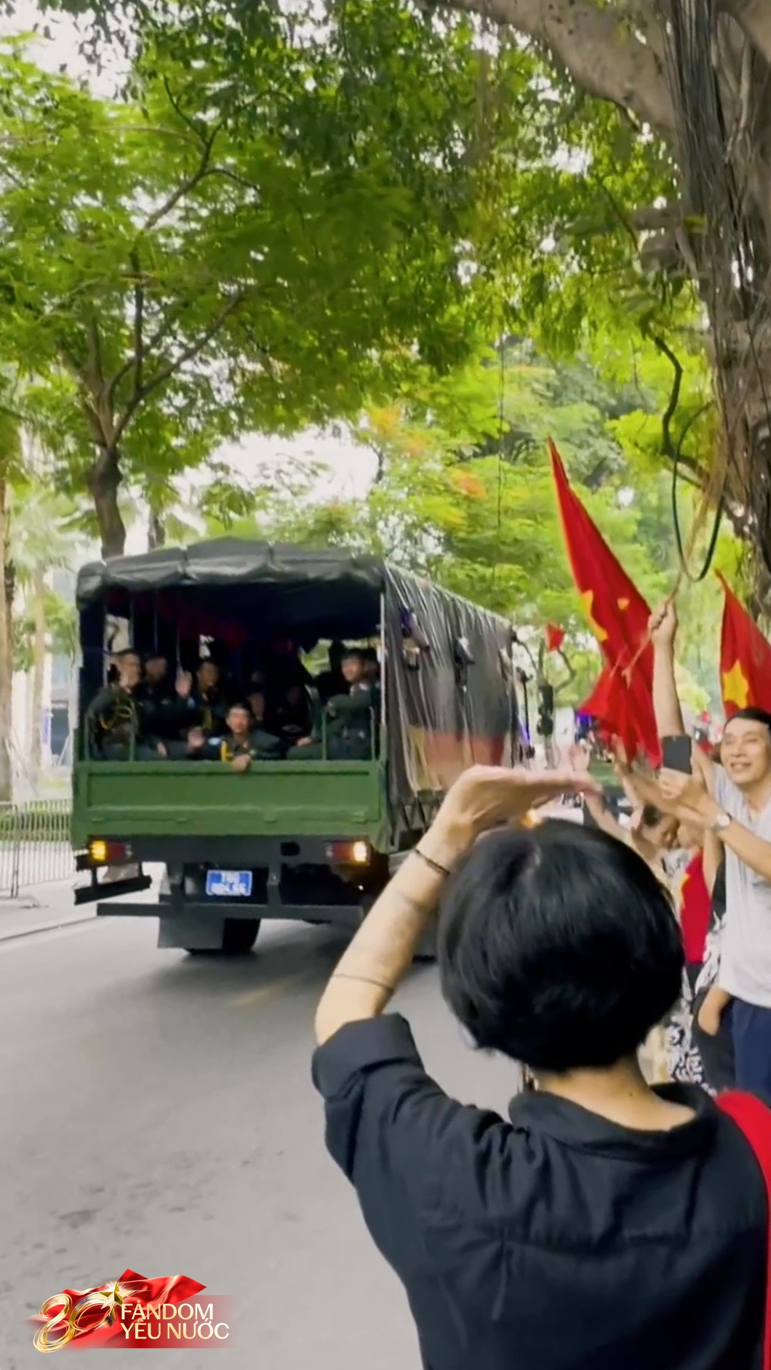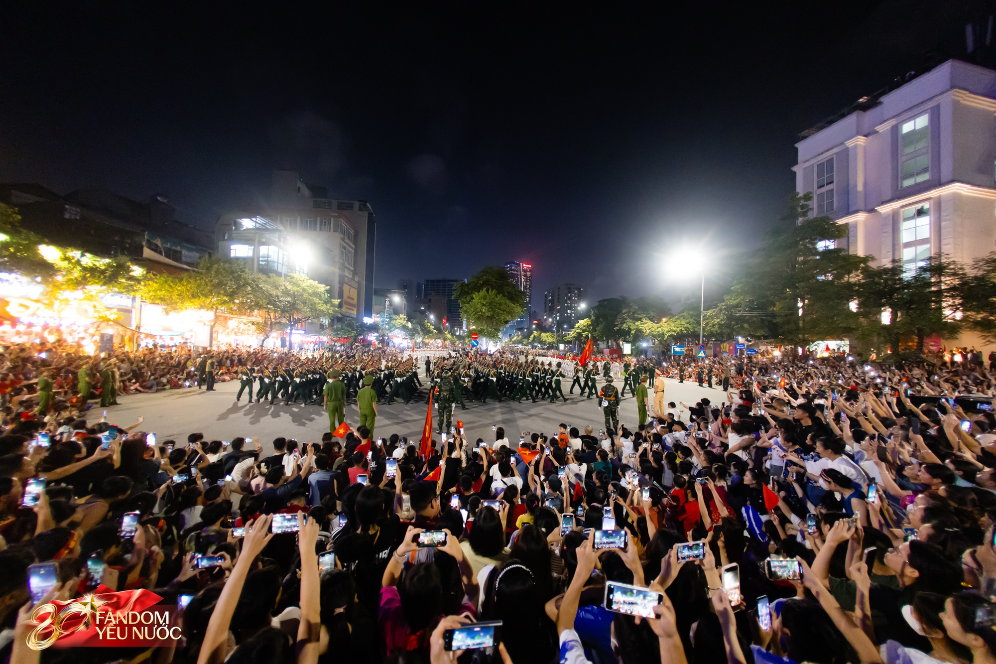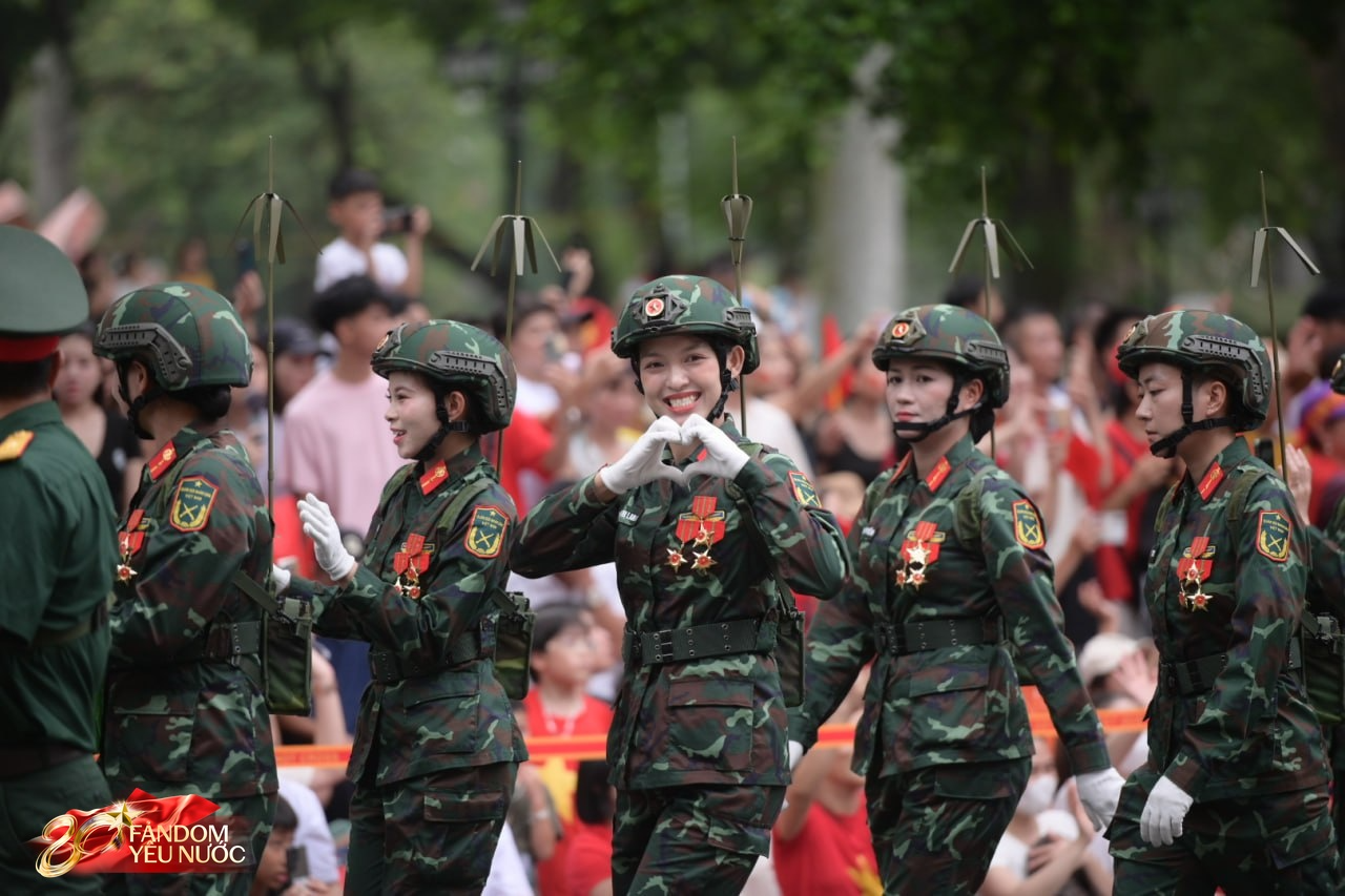 Lúc 21h30, tôi hoà vào dòng người đi bộ về nhà, thấy Hà Nội như có một cái Tết rực rỡ giữa mùa hè. Pháo hoa lúc này là tiếng cười nói rộn ràng vang khắp phố. Về đến nhà, mở mạng lên, tôi lại tiếp tục “mất ngủ” vì loạt khoảnh khắc dễ thương được các bạn trẻ quay, edit, chèn nhạc hào hùng rồi chia sẻ khắp nơi. Fanpage Thông tin Chính phủ lúc 2h sáng vẫn còn phát lại clip về khối “bắn tim”, hay đoạn các chiến sĩ đồng thanh gửi lời chúc tới chị em khiến cả trăm người ồ lên vỗ tay không ngớt. Rồi cảnh những bàn tay vẫy chào, những nụ cười lưu luyến khi tiễn các anh chiến sĩ vừa hoàn thành nhiệm vụ lên xe - ai cũng vui mà chẳng nỡ rời.
