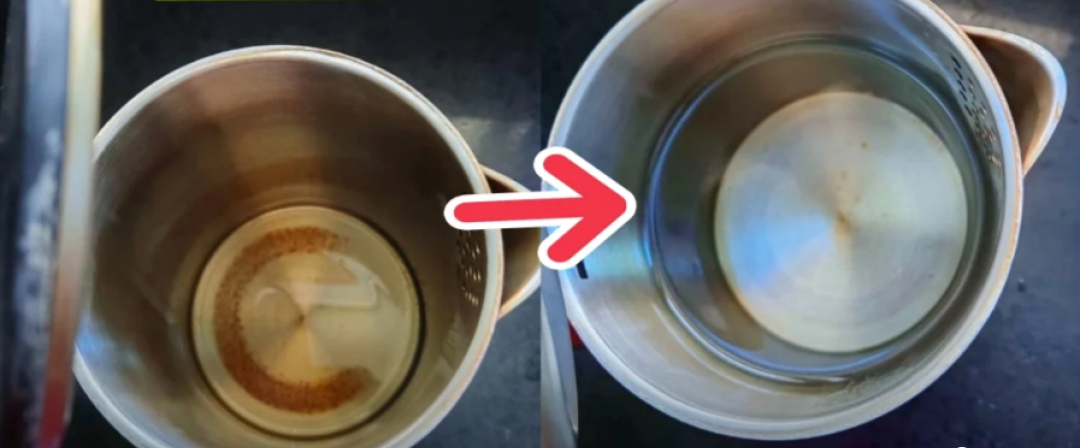 Cho 2 muỗng axit citric → thêm nước → đun sôi → để 15 phút. Khi đổ ra, lớp cặn rơi xuống như… “trình diễn ảo thuật”.