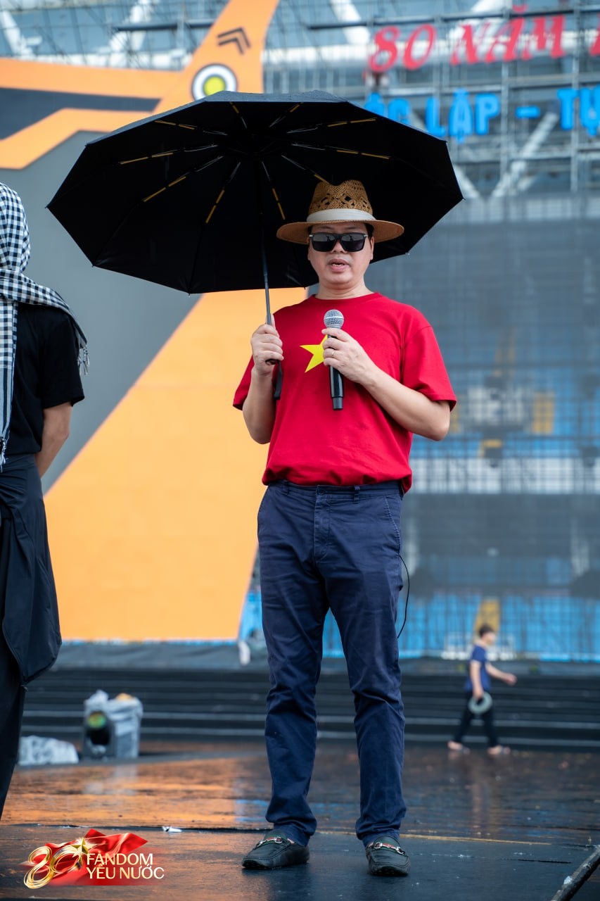 Sau đó, chương trình tạm thời dừng lại vì cơn mưa rào không có dấu hiệu ngừng lại, đồng thời đội ngũ nhân viên có thời gian nghỉ ngơi và ăn trưa. Đến khoảng 15h cùng ngày, Hoàng Bách xuất hiện trong bộ trang phục cờ đỏ sao vàng nổi bật, tự tin cất giọng truyền cao và vang vọng trên nền nhạc đầy tự hào Welcome To Vietnam. Trên những sân khấu ca nhạc chính luận như 80 Năm Hành Trình Độc Lập - Tự Do - Hạnh Phúc, Hoàng Bách là gương mặt quen thuộc chạy show “mòn gót” suốt nhiều năm qua.