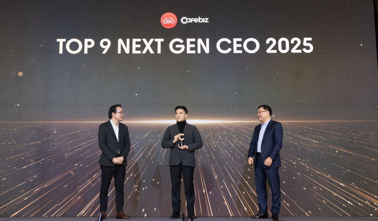 Tại CEO Circle Forum 2026 với chủ đề “Nghĩ Lớn - Làm Chuẩn | Think Big. Do It Right.” do CafeBiz (thuộc Công ty Cổ phần VCCorp) tổ chức, Ban Tổ chức đã chính thức vinh danh Top 9 Next Gen CEO 2025 - những gương mặt tiêu biểu được lựa chọn từ Top 36 Next Gen CEO 2025. Đây là các nhà lãnh đạo trẻ đại diện cho thế hệ doanh nhân Việt Nam mới, hội tụ tư duy chiến lược, năng lực điều hành và tinh thần chuẩn mực trong thực thi.