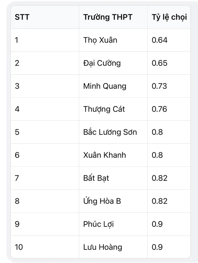 Trước đó, Sở GD&ĐT Hà Nội công bố số lượng học sinh đăng ký dự tuyển vào các trường THPT năm 2025, trong đó 10 trường có tỉ lệ chọi thấp hơn chỉ tiêu tuyển sinh gồm: