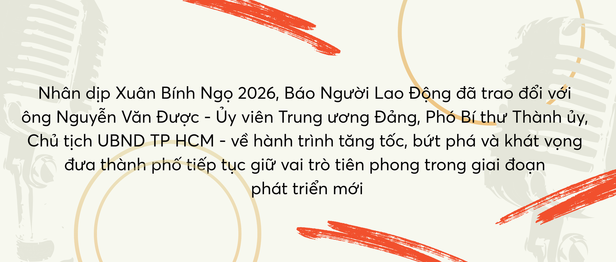 Nhân dịp Xuân Bính Ngọ 2026, Báo Người Lao Động đã trao đổi với ông Nguyễn Văn Được - Ủy viên Trung ương Đảng, Phó Bí thư Thành ủy, Chủ tịch UBND TP HCM