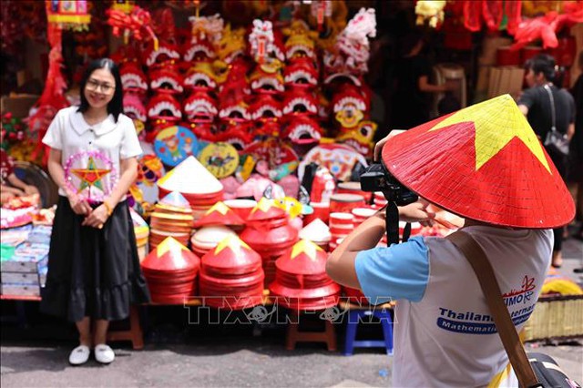Phố Hàng Mã đông đúc người dân tới check in, vui chơi nhân dịp nghỉ lễ A80. (Ảnh: TTXVN)