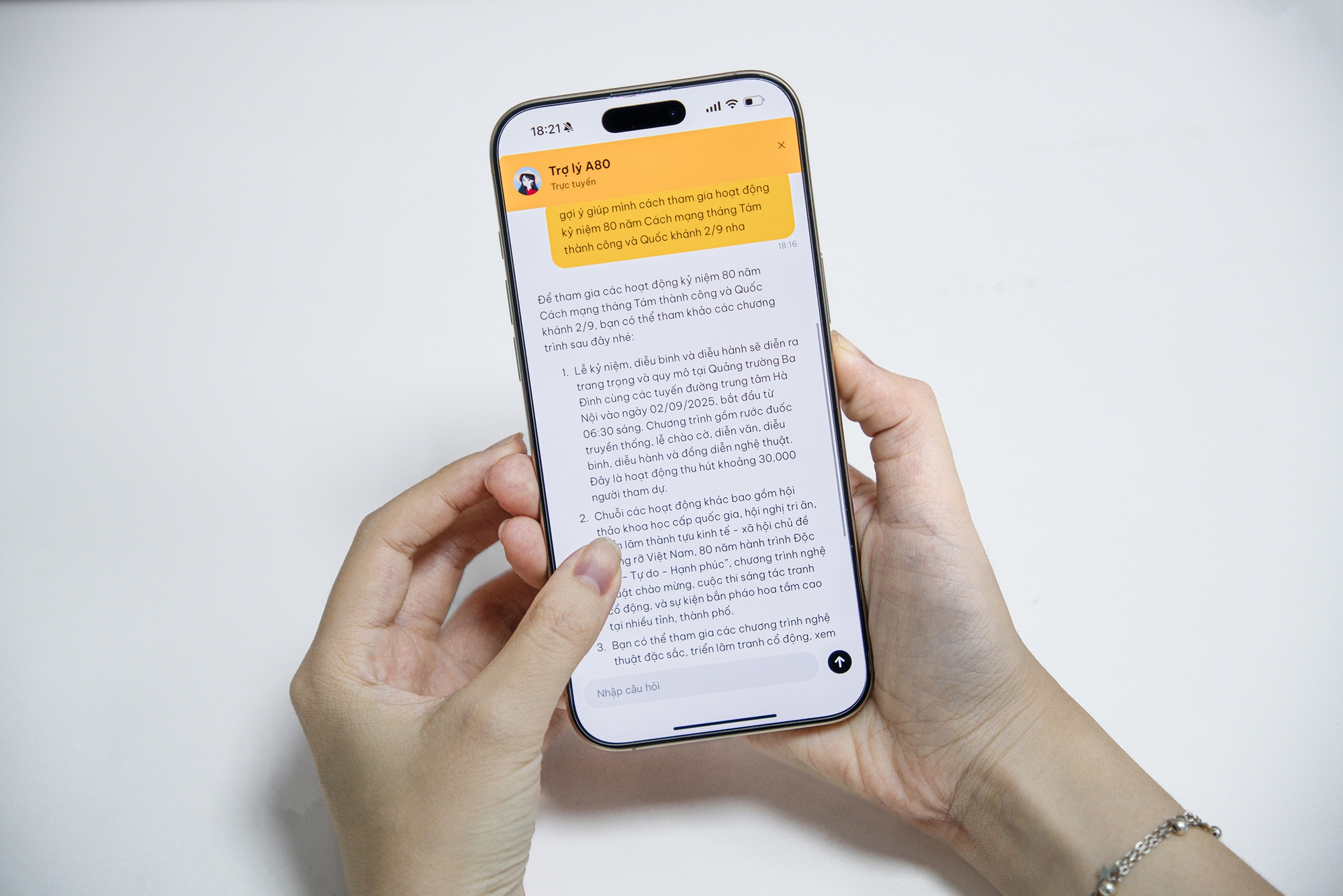 Điểm khiến A80 khác biệt chính là cách ứng dụng công nghệ để người dân thực sự “sống” cùng sự kiện. Chatbot AI đóng vai trò như trợ lý ảo, sẵn sàng gợi ý sự kiện, chỉ đường, nhắc lịch. Chẳng hạn, khi người dùng nhờ gợi ý cách tham gia hoạt động kỷ niệm 80 năm Cách mạng tháng Tám thành công và Quốc khánh 2/9, chatbot sẽ nhanh chóng trả lời bằng một loạt gợi ý vô cùng chi tiết.