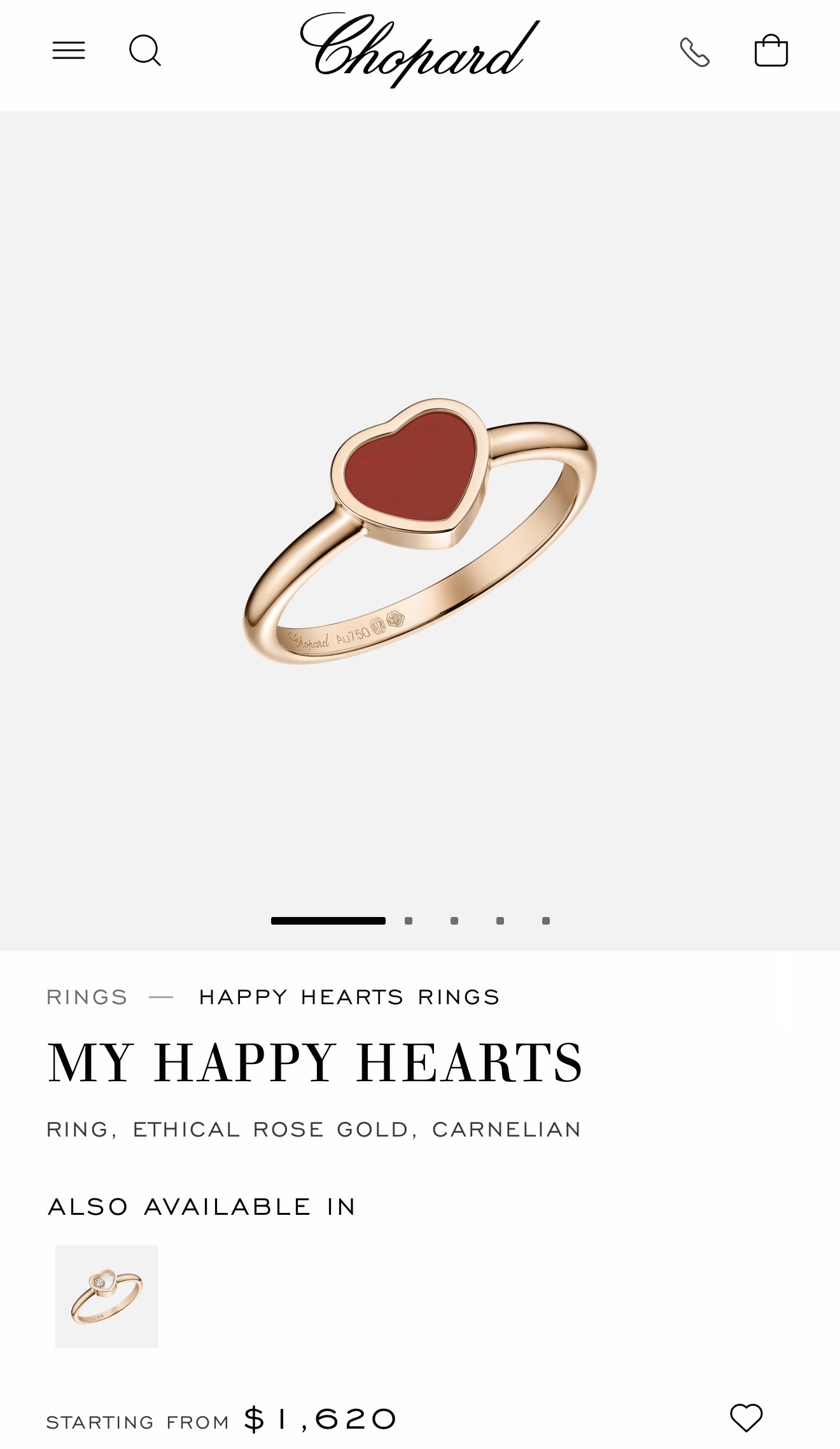 Mẫu nhẫn tối giản của Chopard có giá bán 1.620 USD (hơn 42 triệu đồng).