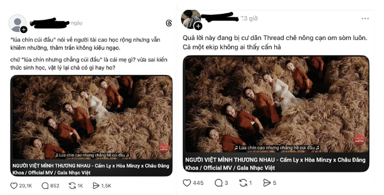 Tâm điểm của tranh cãi nằm ở câu hát: “Lúa chín cao nhưng chẳng hề cúi đầu”. Trong quan niệm phổ biến, hình ảnh “lúa chín cúi đầu” từ lâu được xem là biểu tượng của sự khiêm nhường, càng trưởng thành, càng giỏi giang càng biết tiết chế và lắng nghe.