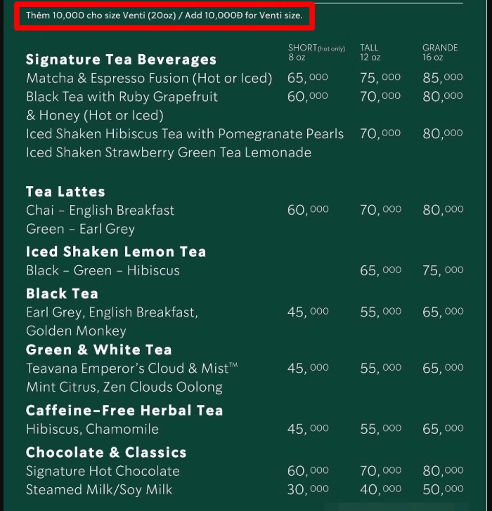 Một lập luận khác cũng được đưa ra: tệp khách hàng chính của chuỗi cà phê này tại Việt Nam chủ yếu là giới trẻ, nhân viên văn phòng hoặc khách quốc tế, là những nhóm có mức độ tiếp xúc với tiếng Anh tương đối cao. Vì vậy, việc duy trì thực đơn thiên về tiếng Anh có thể phù hợp với định vị thương hiệu.