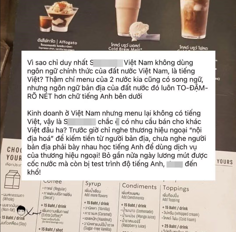 Tranh cãi chuỗi cà phê hoạt động tại Việt Nam nhưng thực đơn chỉ chuộng tiếng Anh: Gọi một ly cà phê cũng thành... bài kiểm tra ngoại ngữ!