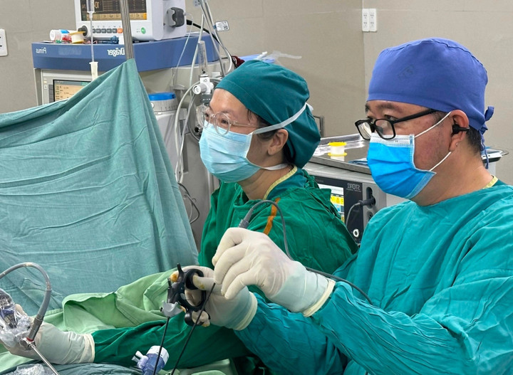 Ngay lập tức, bệnh nhi được ổn định tình trạng nhiễm trùng và lên lịch phẫu thuật lấy sỏi. Ê kíp phẫu thuật lấy sỏi bằng phương pháp nội soi với vết mổ xâm lấn tối thiểu, ít gây đau và thời gian hồi phục nhanh.