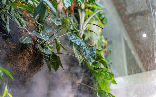 Thực khách sẽ được chào đón bởi những loại cây cối quen thuộc của rừng rậm Việt Nam, như dương xỉ cổ thụ, bạch tạng, dola, ráy voi... được trồng khắp khuôn viên nhà hàng. Những bức tường xanh được phủ đầy rêu phong, bóng cây xanh bao phủ và thảm thực vật phong phú, sẽ làm bạn ngỡ như đang đặt chân vào một thế giới hoang dã trong lành.