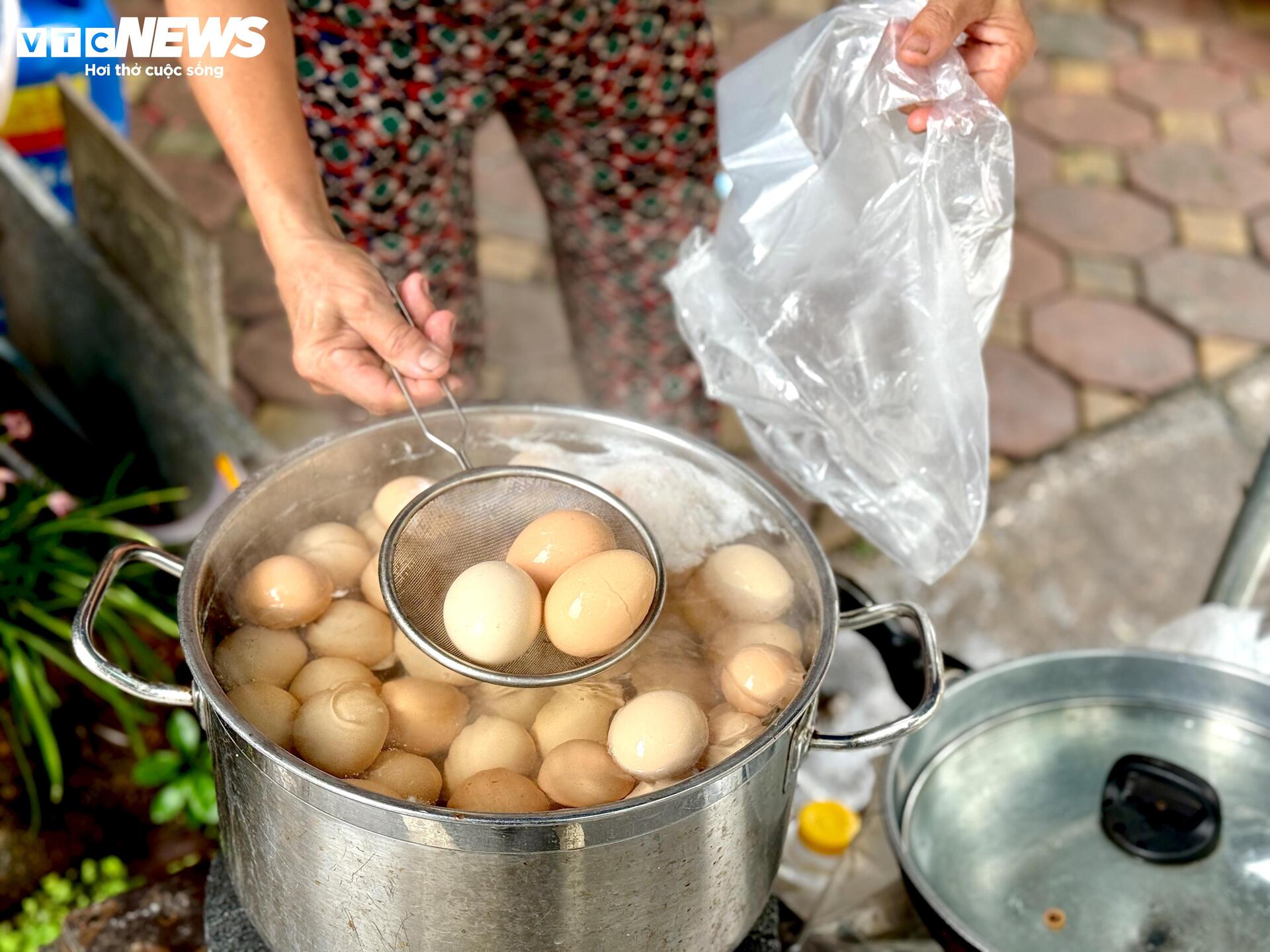 Những nồi trứng luộc nóng hổi liên tục được bày bán, giá từ 5.000 - 7.000 đồng/quả, thu hút đông đảo khách mua trong lúc chờ đoàn diễu binh đi qua.