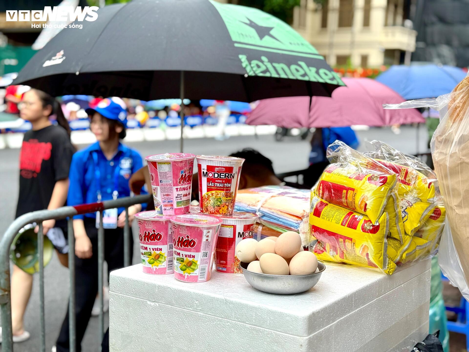 Trứng luộc, mì ly, bánh mì phục vụ tận nơi cho người xem diễu binh với giá hợp lý.