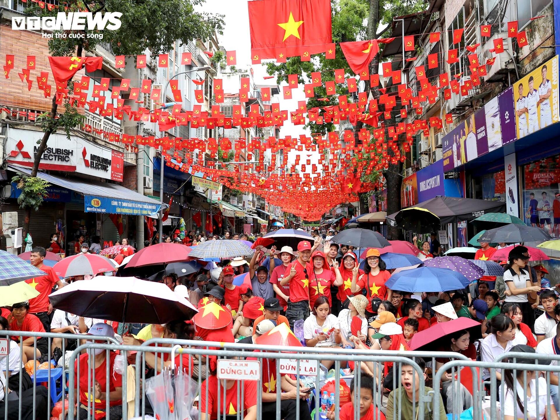 Ghi nhận của PV Báo Điện tử VTC News, từ tờ mờ sáng 27/8, các tuyến phố quanh Quảng trường Ba Đình đã chật kín người dân đổ về chờ xem sơ duyệt A80.