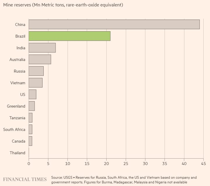 Mối quan tâm của Mỹ gia tăng sau khi Trung Quốc hạn chế xuất khẩu đất hiếm nhằm đáp trả chính sách thuế quan của Tổng thống Donald Trump. Trong nỗ lực tìm nguồn cung thay thế, Washington coi Brazil là một đối tác tiềm năng, bên cạnh các quốc gia như Australia và Cộng hòa Dân chủ Congo.