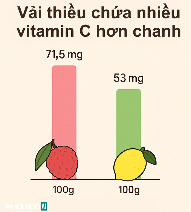 Có thể thấy, vải thiều chứa nhiều chất dinh dưỡng thiết yếu khác nhau như protein, chất xơ, kali, magiê, phốt pho, vitamin nhóm B... Đặc biệt, vải thiều chứa hàm lượng vitamin C cao, với 71,5mg/100g vải. Lượng vitamin C này thậm chí còn vượt qua cả chanh (100g chanh chỉ cung cấp 53mg vitamin C).