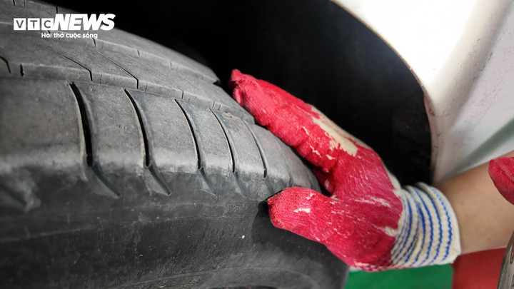 Kiểm tra độ mòn của lốp. (Ảnh: Kỳ Anh)