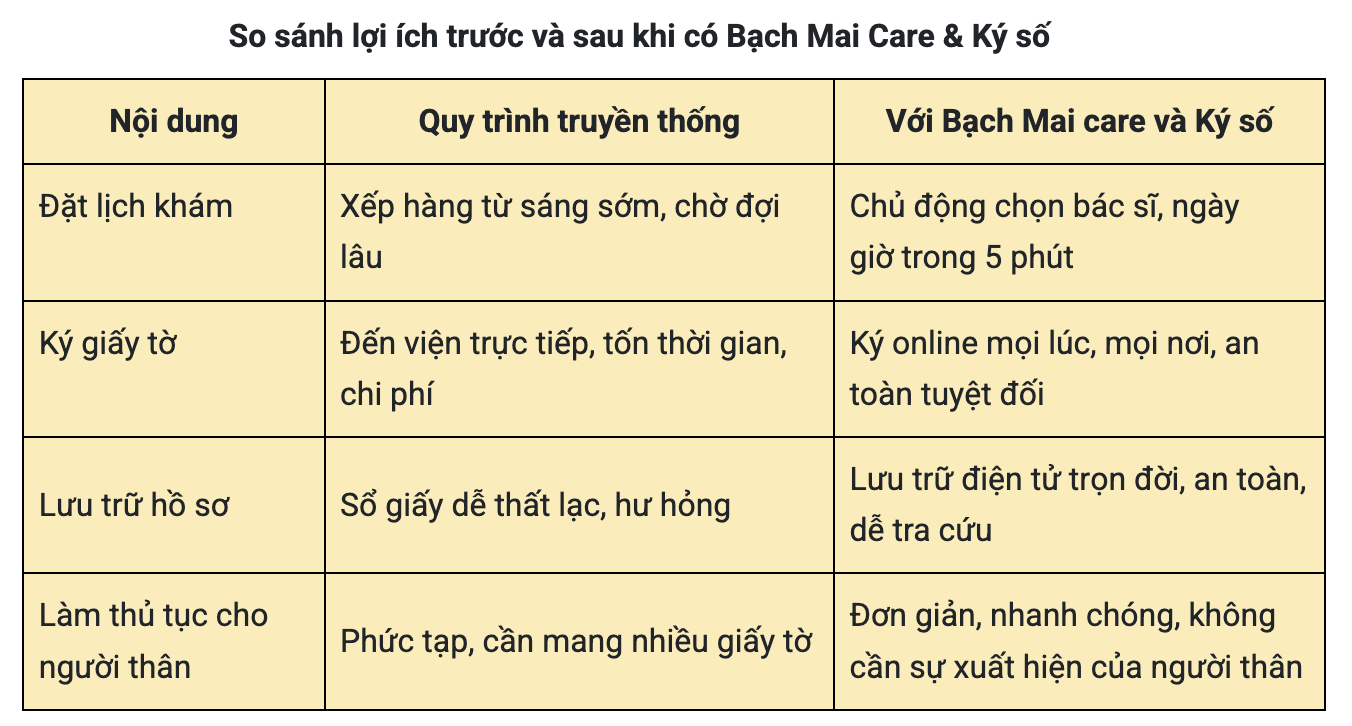 Việc áp dụng ký số không chỉ đồng hành cùng chủ trương chuyển đổi số quốc gia, mà còn mang lại lợi ích thiết thực cho người bệnh và gia đình: tiết kiệm thời gian, chi phí, tăng tính minh bạch và an toàn thông tin.