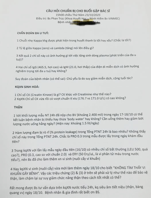 Bệnh nhân chuẩn bị sẵn những điều mình băn khoăn, gửi trước để bác sĩ có thời gian đọc, suy nghĩ. Khi gặp nhau, hai bên cùng trao đổi, cùng phân tích, cùng đi đến quyết định.