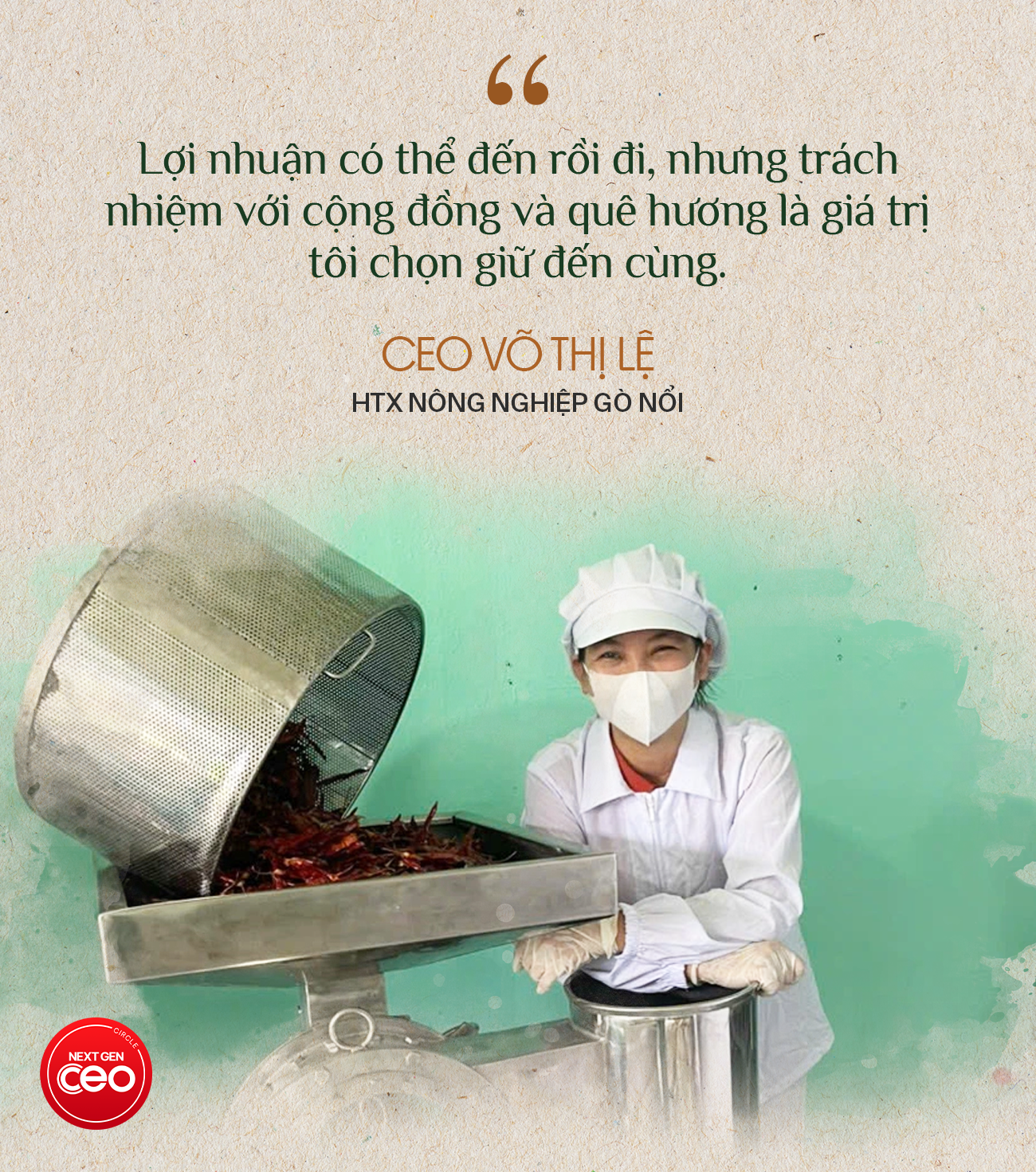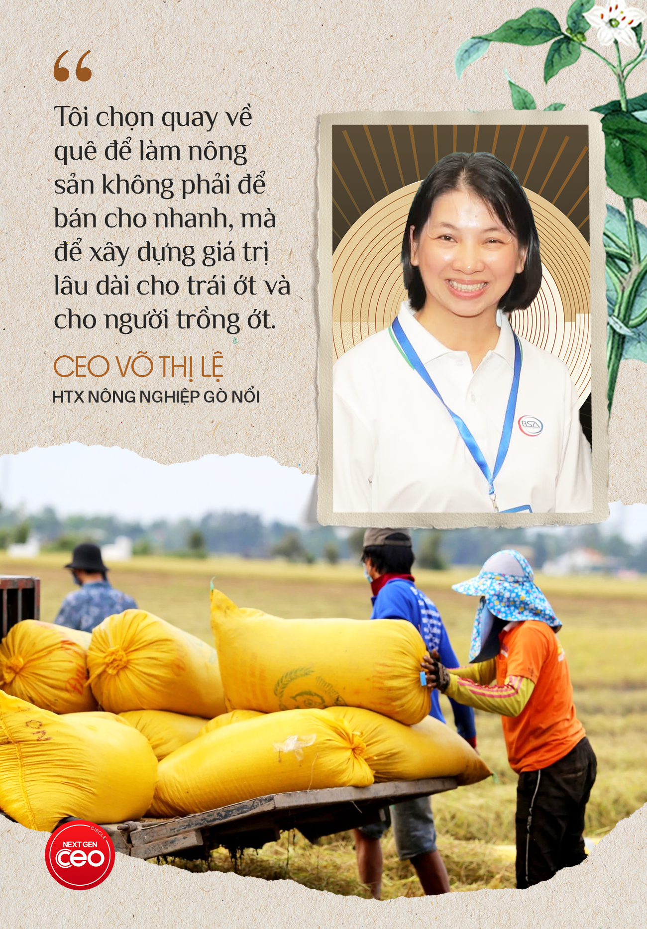 Trước khi HTX Nông nghiệp Gò Nổi hình thành, ớt ở vùng này chủ yếu được bán thô, phụ thuộc hoàn toàn vào thương lái. Giá cả bấp bênh khiến thu nhập người trồng ớt không ổn định, đời sống gặp nhiều khó khăn. Với Võ Thị Lệ, nếu không có một cách làm khác, trái ớt quê hương sẽ mãi chỉ là nguyên liệu rẻ, chứ không bao giờ trở thành một sản phẩm có giá trị.