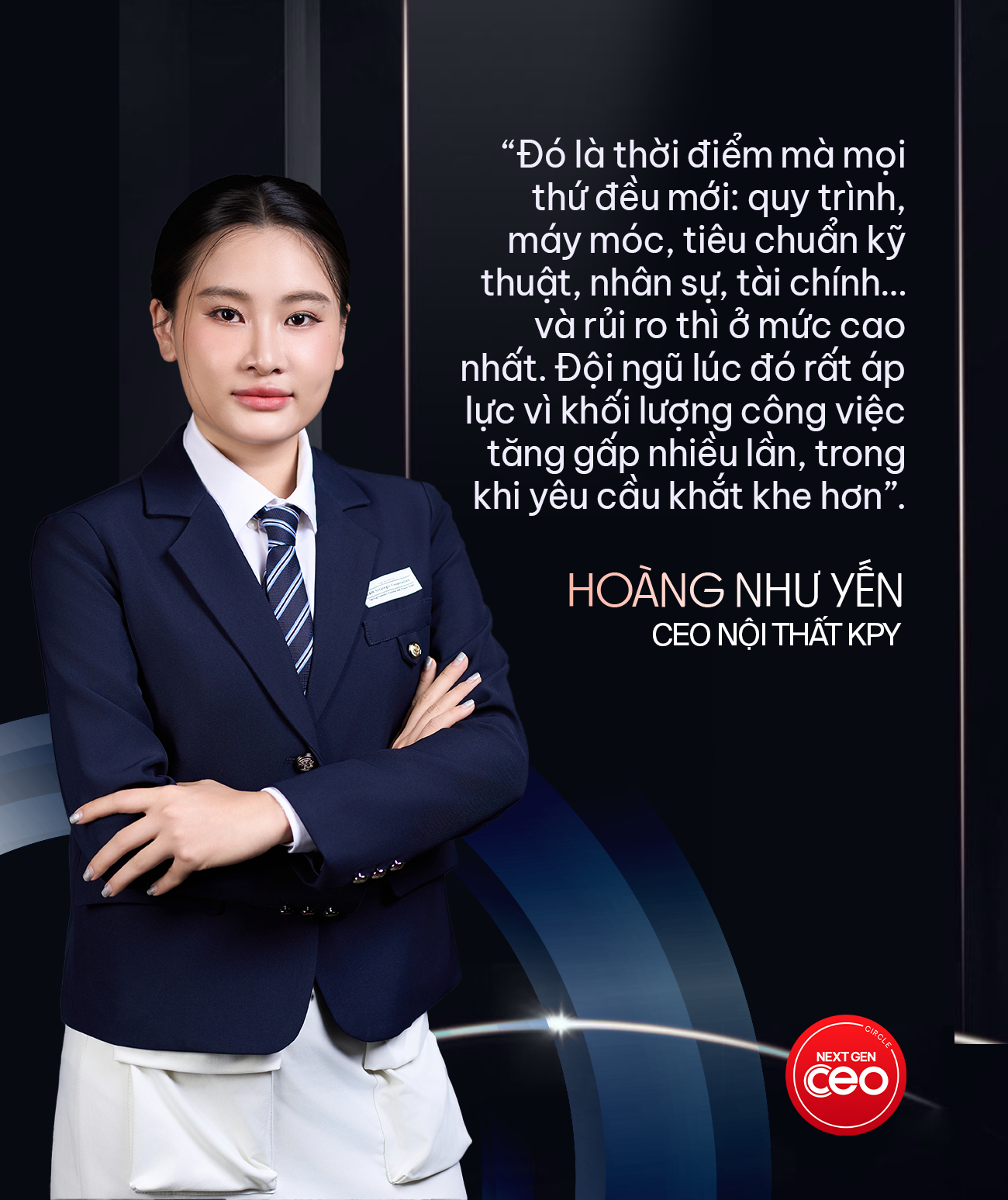 Trong 2 - 3 năm qua, quyết định chiến lược khiến chị Yến tự hào nhất và cũng học được nhiều nhất là việc tái định vị KPY, chuyển dịch từ doanh nghiệp thiết kế - thi công truyền thống sang mô hình sản xuất nội thất chất lượng cao, hướng đến tiêu chuẩn xuất khẩu sang Mỹ và châu Âu. Đây là một lựa chọn không dễ dàng, vì chị đã phải đặt xuống những cách làm quen thuộc và dẫn dắt đội ngũ bước vào một hướng đi hoàn toàn mới: từ tiêu chuẩn sản phẩm, vận hành nhà máy, vật liệu xanh, đến tư duy về chất lượng và tính bền vững. Nhưng tôi biết rằng nếu không thay đổi, KPY sẽ mãi đứng trong vùng an toàn.