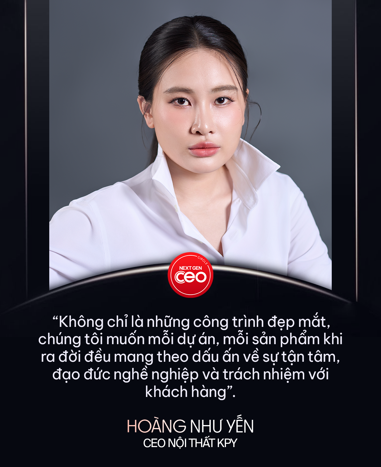 Cuối cùng, nữ CEO mong muốn KPY và bản thân với tư cách một nhà lãnh đạo được nhớ đến như một nơi luôn tôn trọng con người, giá trị nghề nghiệp và chất lượng sáng tạo. “Không chỉ là những công trình đẹp mắt, chúng tôi muốn mỗi dự án, mỗi sản phẩm khi ra đời đều mang theo dấu ấn về sự tận tâm, đạo đức nghề nghiệp và trách nhiệm với khách hàng”.