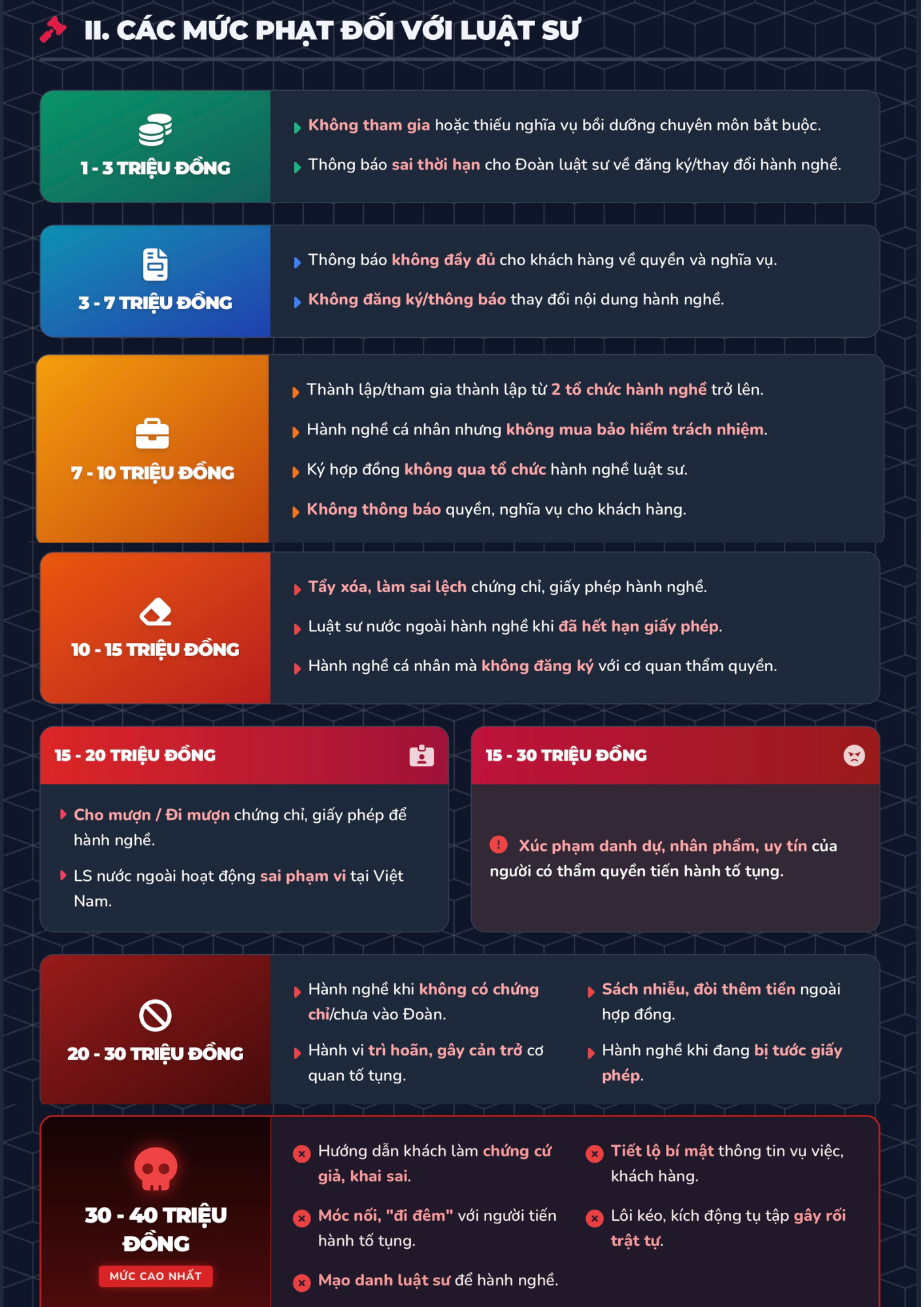Các mức phạt đối với vi phạm hoạt động hành nghề luật sư