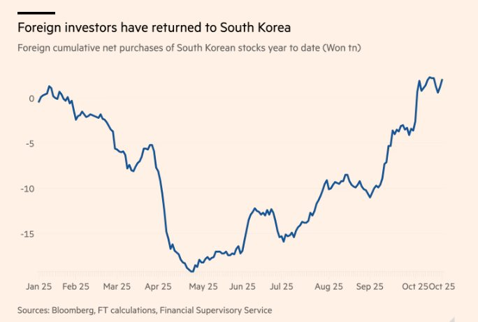Bên cạnh đó từ nửa cuối năm, nhà đầu tư nước ngoài đã mua ròng hơn 2 nghìn tỷ Won, đảo chiều hoàn toàn xu hướng bán tháo đầu năm và trở thành lực đẩy thanh khoản chính cho thị trường. Các chuyên gia nhận định rằng đây mới chỉ là khởi đầu, và dòng vốn nước ngoài dự kiến sẽ tiếp tục tăng, đặc biệt khi các nhà đầu tư cá nhân Hàn Quốc, vốn đang thận trọng, bắt đầu tham gia trở lại thị trường.
