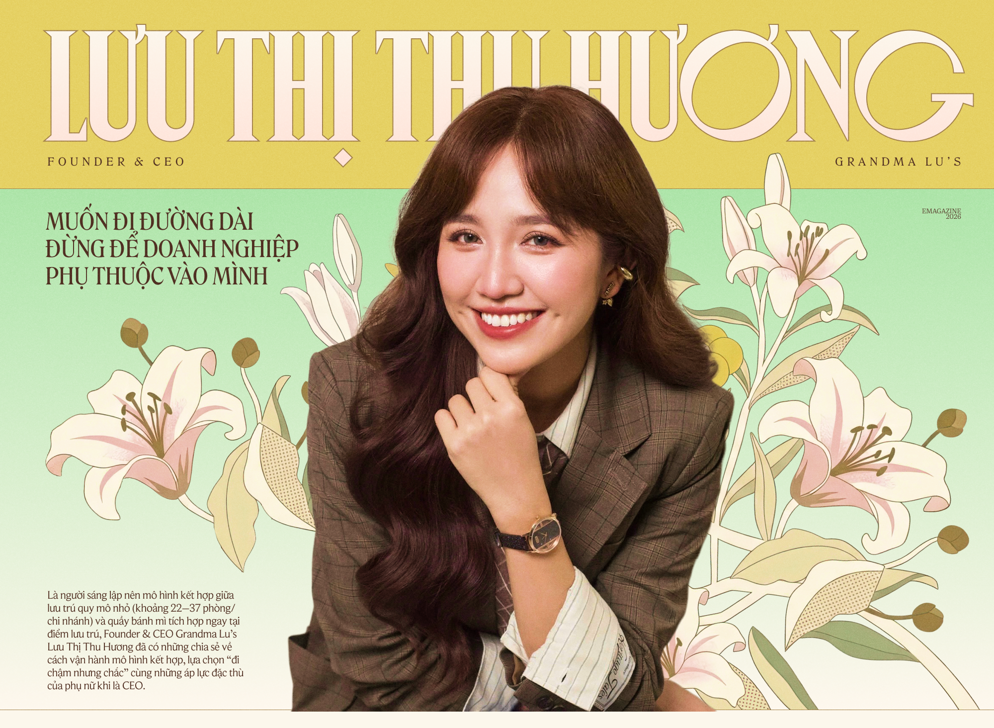 Ngoài ra, có một điều thú vị là ban đầu tôi mở Grandma Lu's không phải vì tôi có tầm nhìn "phải mở rộng quy mô thật lớn". Nó bắt đầu từ một điều rất riêng: tôi muốn giữ lại câu chuyện gia đình. Nhưng chính việc được phỏng vấn, được mời chia sẻ, được hỏi sâu về mô hình… lại khiến tôi tự nhìn ra tiềm năng lớn hơn của thứ mình làm. Có những cơ hội đến không phải vì mình chủ động tìm, mà vì "đúng lúc" mình có thứ đáng kể. Và khi cơ hội đến, mình buộc phải trưởng thành để xứng với nó.