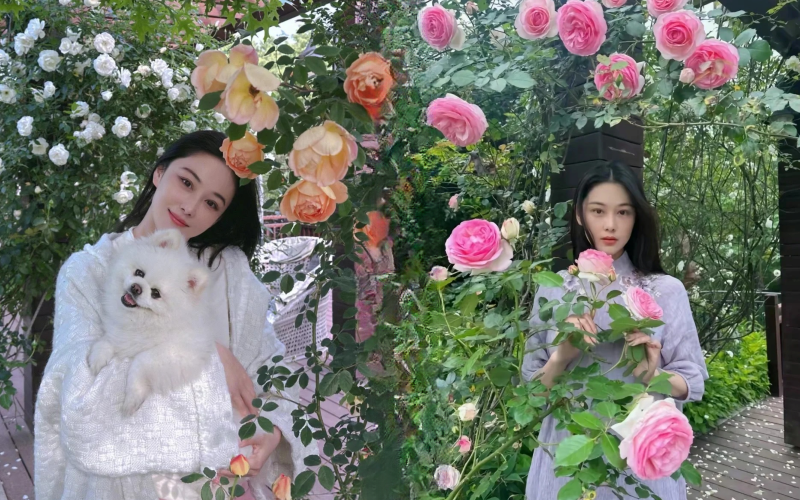 Truyền thông Trung Quốc gọi khu vườn của Trương Hinh Dư là “vườn Monet sang chảnh”, còn chính cô đặt cho khoảng sân sau một cái tên rất dễ thương: “Khai Hinh nông trường” vừa chơi chữ theo tên mình, vừa gợi cảm giác ấm áp, gần gũi. Trong khoảng sân chừng 100m2, cô không xây hồ bơi hay nhà kính xa hoa, mà bày đủ loại chậu, lu, khung gỗ để trồng cây. Hoa hồng, cẩm tú cầu, hoa leo đủ màu được cô sắp xếp quanh tường và dàn gỗ, tạo ra background “ảo” như một bức tranh. Giữa những khóm hoa là luống rau xanh, dàn cà chua đỏ, trái cây chín vàng - một sự kết hợp khiến người ta vừa muốn chụp ảnh, vừa muốn… xin giống về trồng.