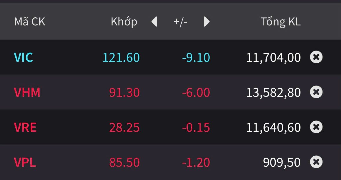 Không chỉ VIC, các cổ phiếu khác trong họ nhà Vin cũng đều giảm giá trong phiên giao dịch ngày hôm nay. Cụ thể, cổ phiếu VHM giảm 6%, cổ phiếu VRE giảm 0,15% và cổ phiếu VPL giảm 1,2%.