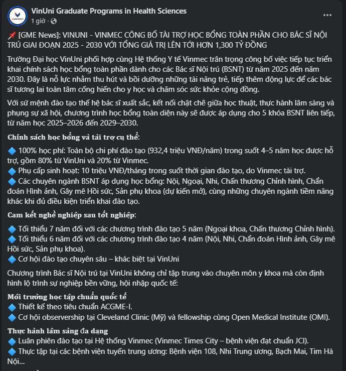 Theo Fanpage VinUni Graduate Programs in Health Sciences