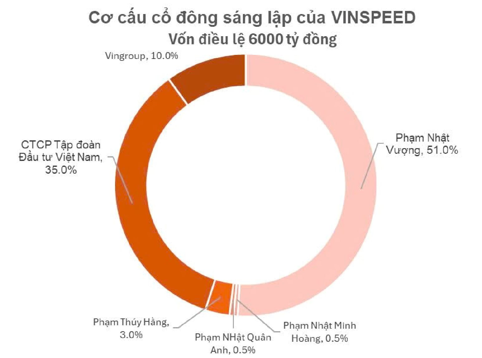 VinSpeed có vốn điều lệ 6.000 tỷ đồng do Chủ tịch Vingroup cùng các thành viên trong gia đình và các bên liên quan đã góp vốn thành lập. Trong đó, ông Phạm Nhật Vượng góp 51% cổ phần (khoảng 3.060 tỷ đồng). Vingroup góp 600 tỷ đồng, sở hữu 10% cổ phần. Tiếp đến là CTCP Tập đoàn Đầu tư Việt Nam góp 2.100 tỷ đồng, sở hữu 35% cổ phần. Bà Phạm Thúy Hằng, em gái bà Phạm Thu Hương (vợ ông Phạm Nhật Vượng), góp 3%.