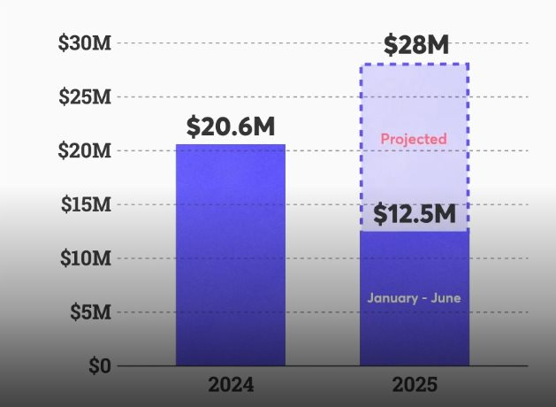 Doanh thu 16 Handles trong năm 2024, nửa đầu năm 2025 và dự kiến trong cả năm nay. (Ảnh: CNBC)