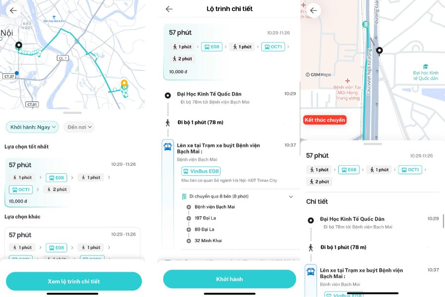 Bước 3: Sau khi đã lựa chọn điểm đi và điểm đến, tính năng VinBus trên ứng dụng Xanh SM sẽ đưa ra các lựa chọn về tuyến đường đi.