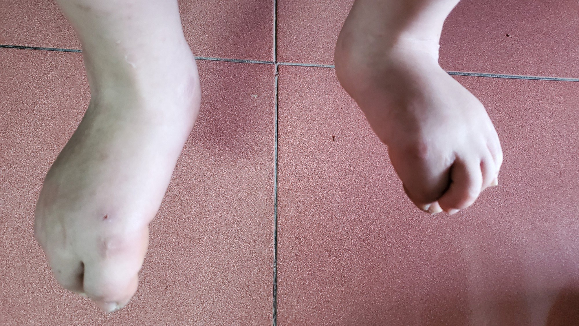 Liên bên mẹ và cận cảnh đôi chân của em (phải)