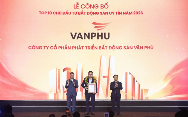 Ngày 22/4, tại TP Hồ Chí Minh, Công ty Cổ phần Phát triển Bất động sản Văn Phú được vinh danh Top 10 Chủ đầu tư bất động sản uy tín 2026.